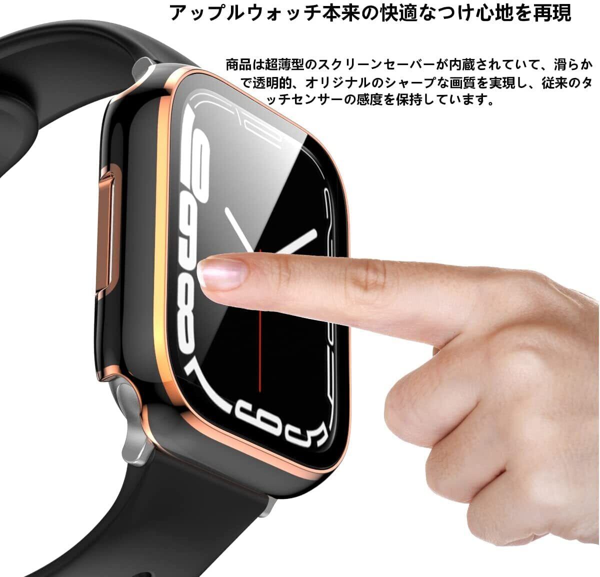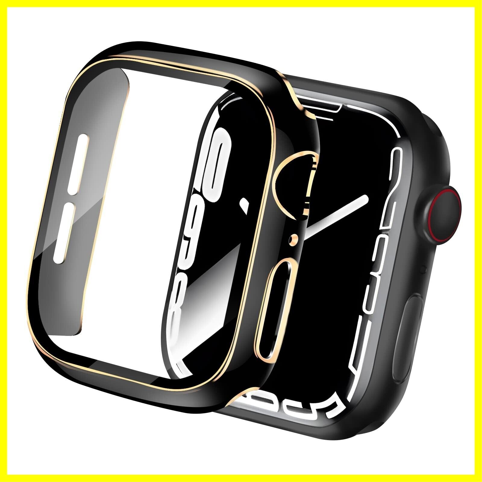 CABOBE 対応 Apple Watch ケース 44mm メッキ加工 アップルウォッチSE2/SE/6/5/4 カバー Apple Watch SE2/SE/6/5/4 カバー 2色 対応 アップルウォッチ ケース ガラスフィルム 一体型 PC素材 耐衝撃 全面保護 対応 44mm ブラック+ゴールド