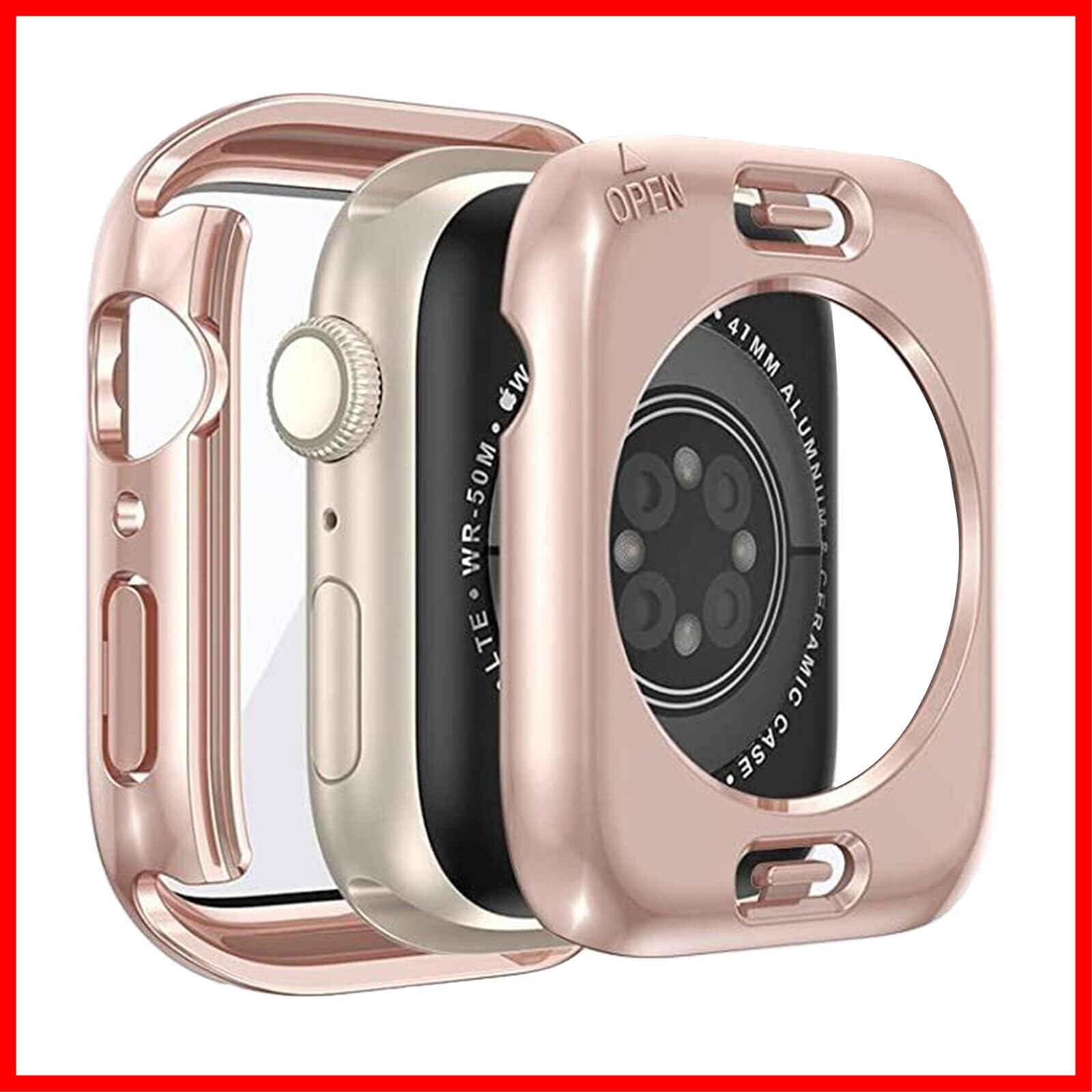 【2024改良ケース】YUGYUG 対応 アップルウォッチ カバー Series SE2/SE/6/5/4 アップルウォッチ ケース PC素材 IP68 防水ケース 360ど度 Apple Watch ケース ガラスフィルム 一体型 日本旭硝子材 二重構造 Apple Watch カバー 全面保護 強化ガラス キズ防止(40mm,ローズゴールド)