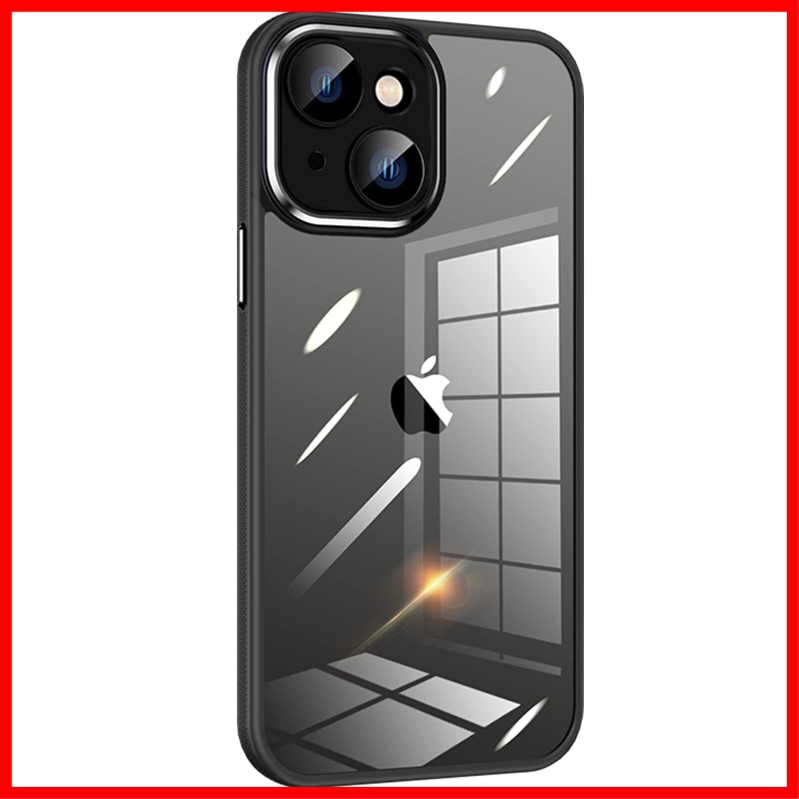 Donocao iphone14 Plus 専用ケース アイフォン14プラスカバー クリア シリコン耐衝撃 カメラカバー付き 強化ガラスフィルムレンズ保護 薄型 御洒落なメッキ金属リング 黄変防止 ワイヤレス充電対応 人気 防水防塵 ブラック