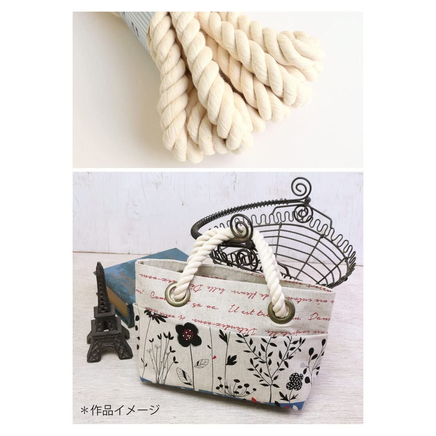 ■バッグの持ち手に最適な綿ロープです。バッグにハトメを付け、ロープを通し結び目を作るだけでマリンやカジュアルなバッグが完成