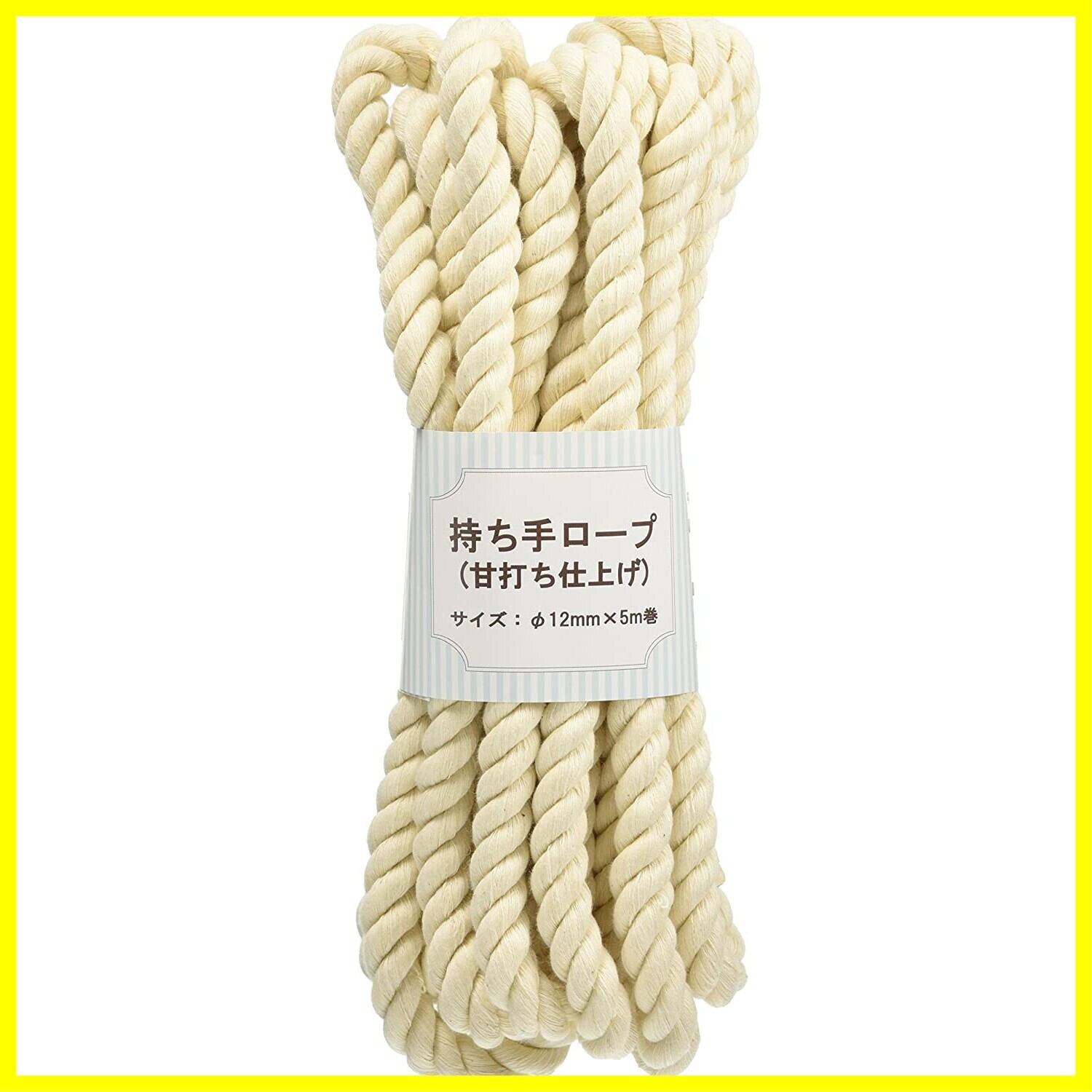 日本紐釦貿易(Nippon Chuko) 持ち手ロープ 甘打ち仕上げ 生成 12mm×5m巻 手芸 綿 多用途ロープ アウトドア ペット用 S3-1