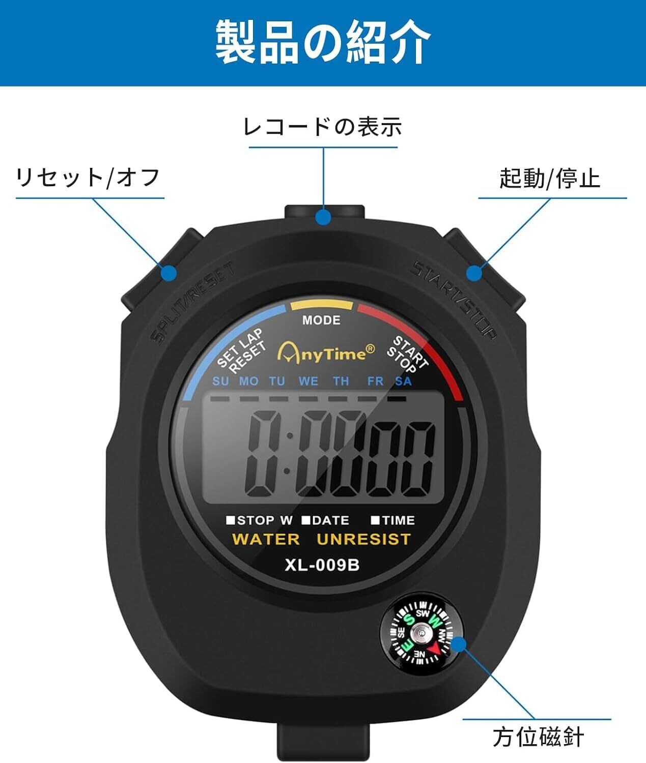 【高品質材質】このクロノグラフストップウォッチは超大画面表示を採用し、数字表示がより鮮明になっている。高品質ABS材料を用いて製造され、防水耐久性、丈夫耐久性、耐摩耗防振、クロノグラフと時計機能を持ち、確度が高く、エネルギー消費が低く、軽量で使いやすく、アウトドアで使用することができる。