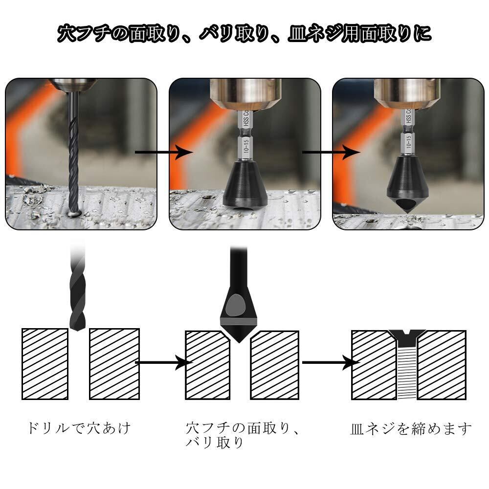 【適用範囲】:木材・アルミ・鉄材のネジ穴の面取りに、パイプ内径の面取り・穴あけ後のバリ取りに、鉄・ステンレス・非鉄金属用向けます。アクリル板にも使えます。また軸の形状が六角軸なので、インパクトドライバー・電気ドリル・充電ドリルでも使用できます。