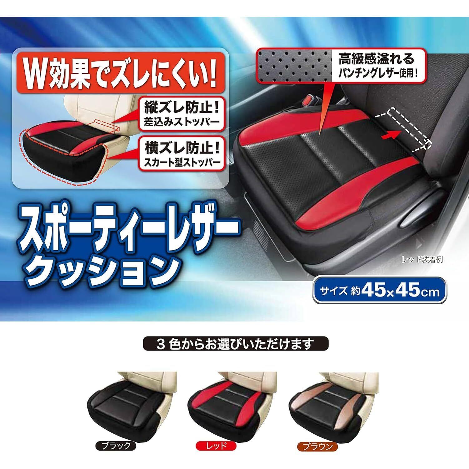 ボンフォーム(BONFORM) シートクッション レザーアロー 軽/普通車 ヒップ型 スカート型ストッパー付き パンチングレザー ヒップガタ45x45x2cm ブラック/レッド 5678-43R