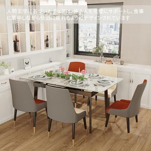 UNHO ダイニングチェア 2脚セット 肘付き レザー おしゃれ リビングチェア 一人用 人間工学 疲れない 可愛い 食卓椅子 背もたれ 座り心地良い ホワイト シンプル モダン キッチン リビング