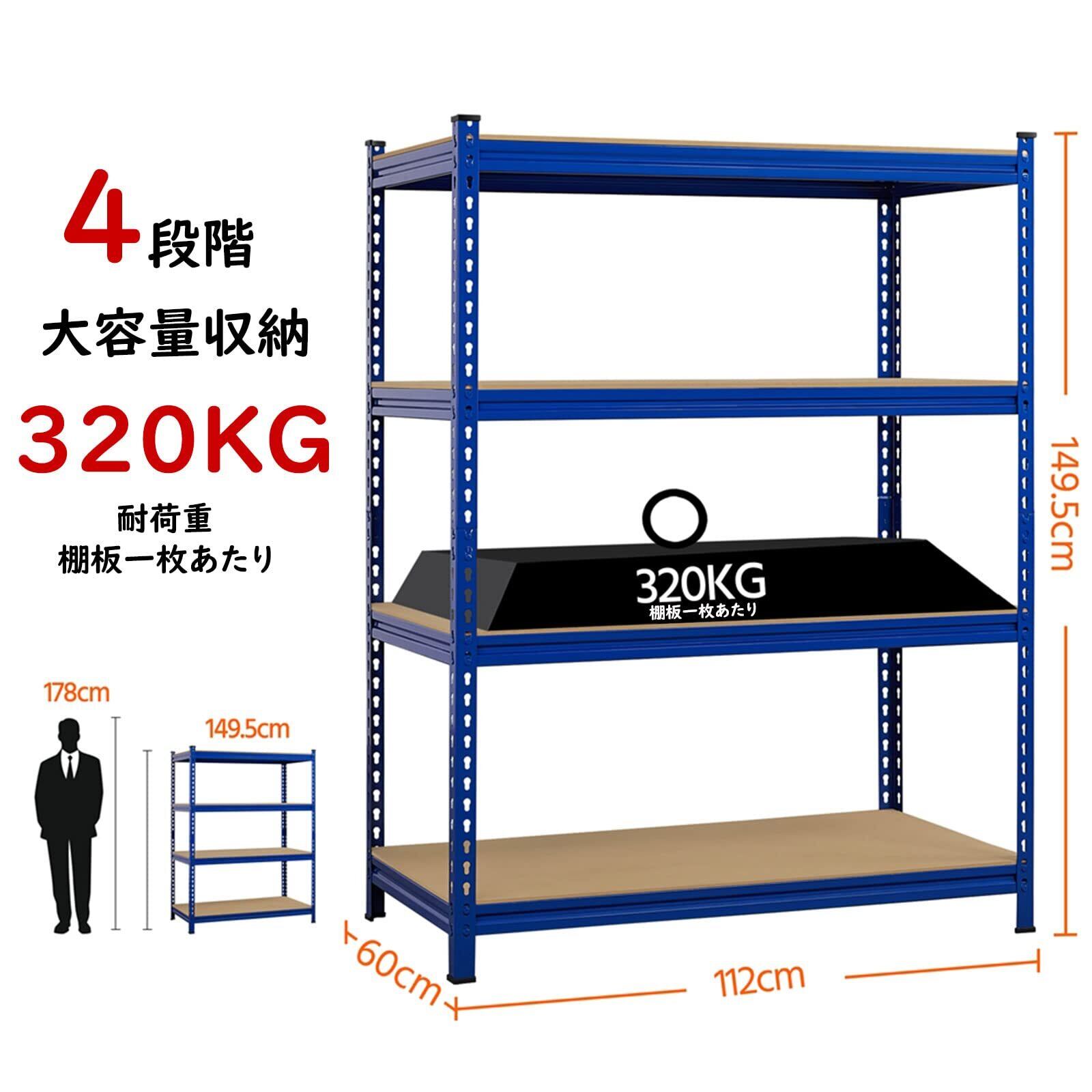 Yaheetech キッチンラック スチールラック本体 高さ150 オープンシェルフ メタルラック 4段 収納棚 高さ調節可 ステンレスラック 収納ラック 防サビ加工 ネジなし 組立簡単 耐荷重1280kg キッチン 物置 倉庫 ガレージ112×60×150cm ブルー