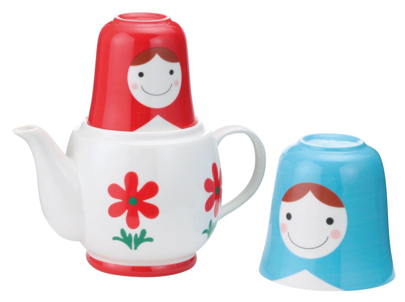 サンアート かわいい食器 「 マトリョーシカ 」 ティーポット&カップ(2人用ティーセット) 青×白 SAN1637