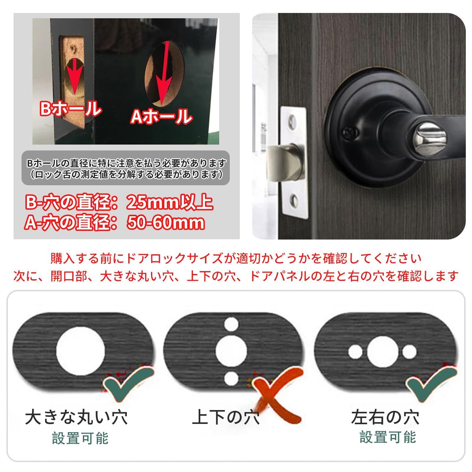 【適用ドア厚さ】本製品はドア厚さ:25-45mmに適用します。取り付け直径50-60mmドア穴、ドア枠から丸穴の中心までの距離60mmを測定します。取り付けミスを避けるために、ご注文前にサイズを測定してください!