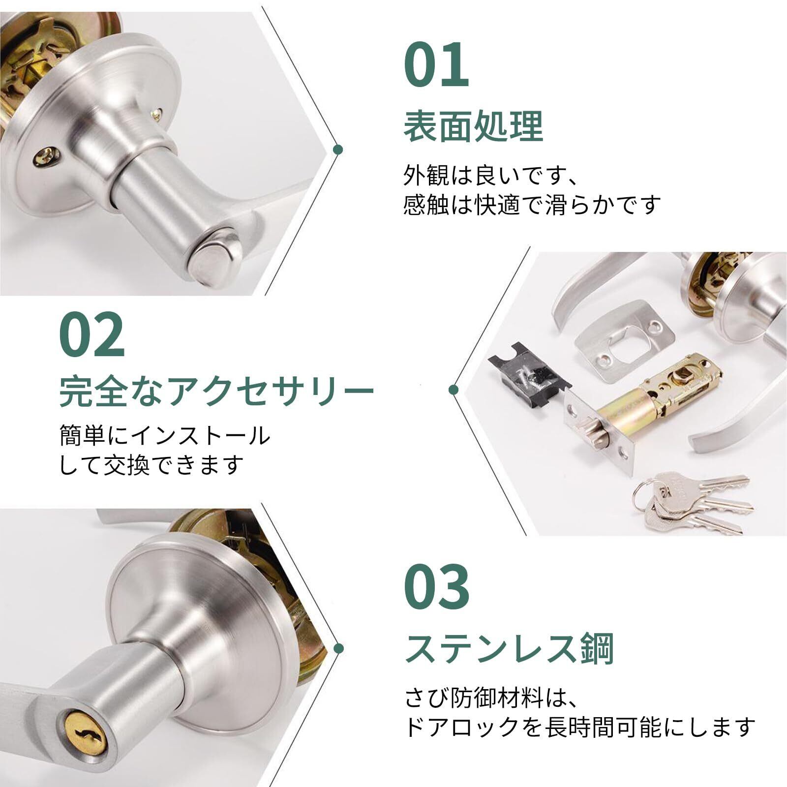 happykau ドアノブ 鍵付き レバーハンドル ドアレバー 浴室ドアノブ トイレ用 玄関ドアノブ 住宅室内用レバーハンドル 室内 ドアノブ交換 鍵付き ドアレバー (シルバー)