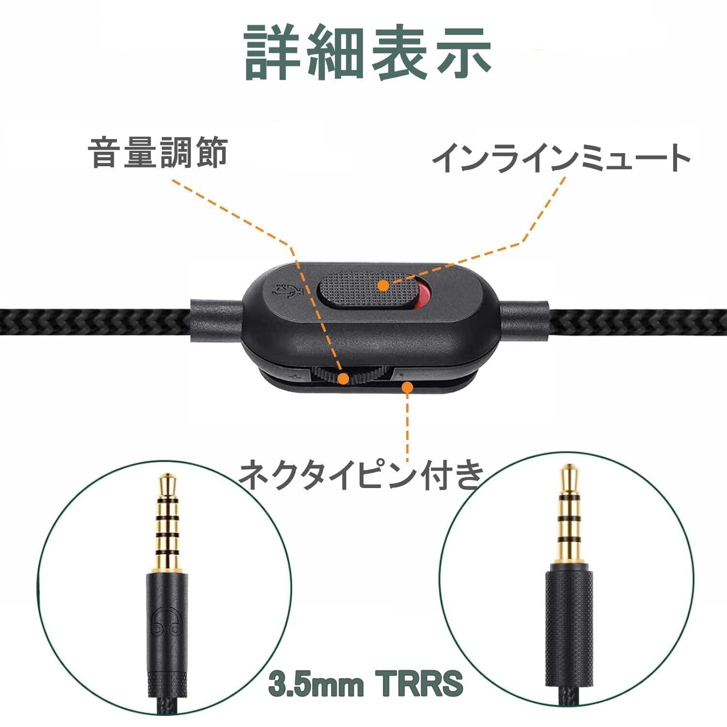 オーディオケーブル ヘッドフォンオーディオケーブル G233 G433 GPRO GPROX用 ボリューム調節ケーブル 音質劣化防止 耐食性 ゲーム