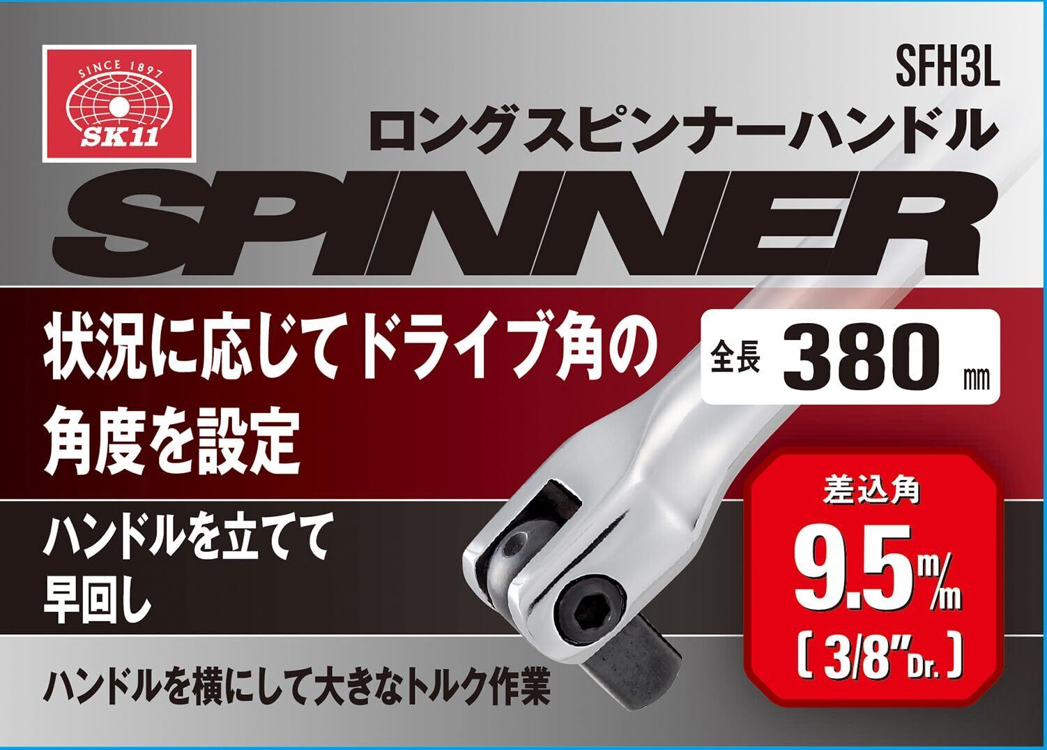 SK11(エスケー11) ロングスピンナーハンドル 差込角9.5 全長380mm SFH3L