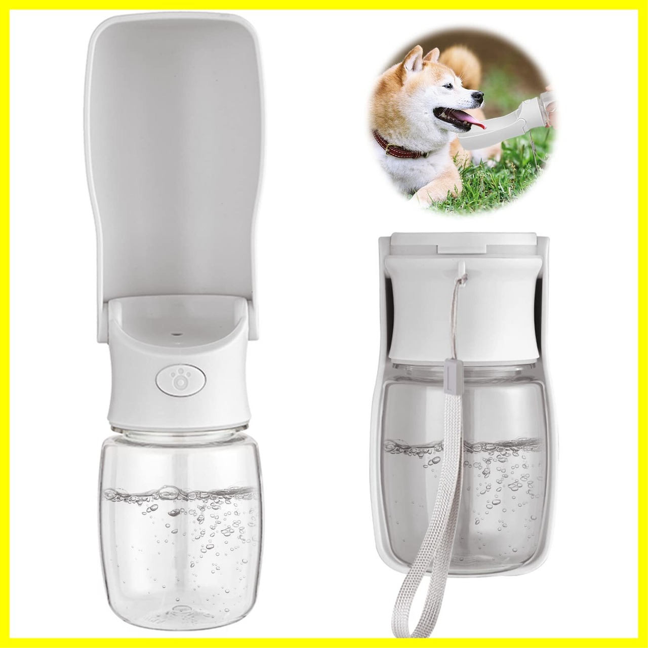 Wodondog ペットウォーターボトル 折り畳み 350ml 携帯用水飲みボトル 給水器 お散歩用水筒 犬 水入れ 犬 猫など アウトドア 夏 お出かけ (350ml, 白)