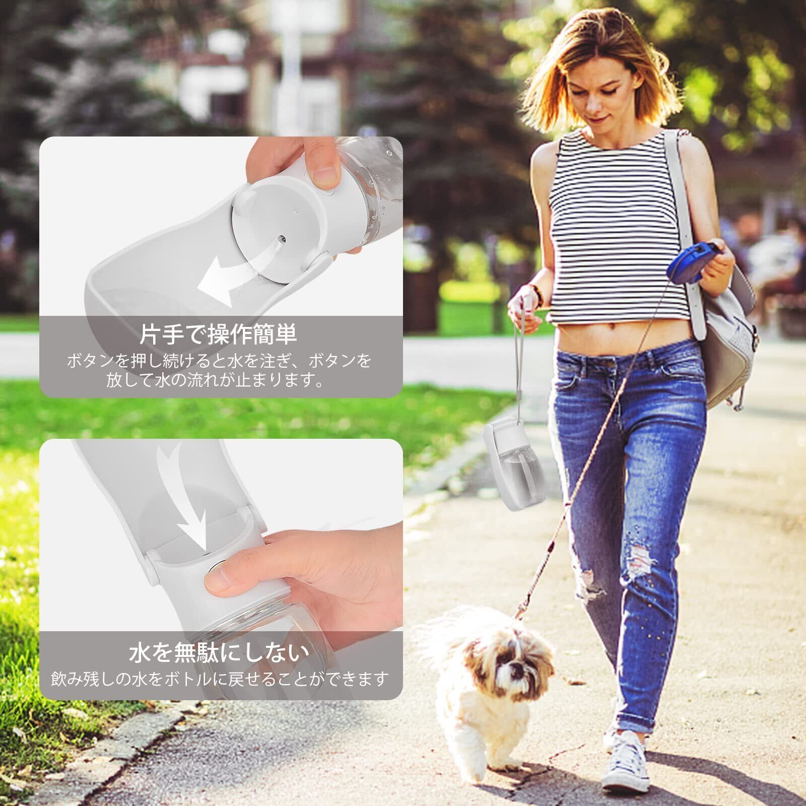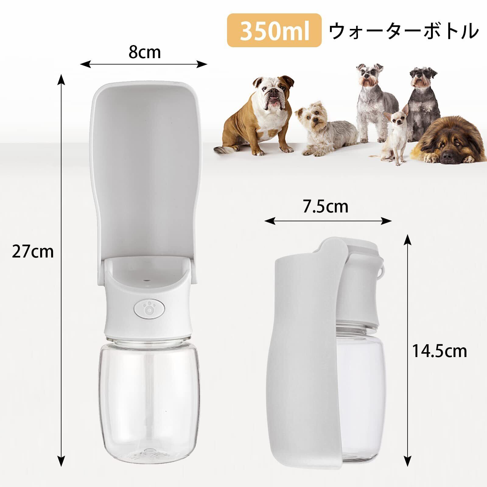 【ワンプッシュ式】 一回のお散歩で飲み切れない350mlのウォーターボトルは、片手で簡単に操作できるので、給水が楽チン!トレーいらずですぐに犬や猫にお水をあげることができます。