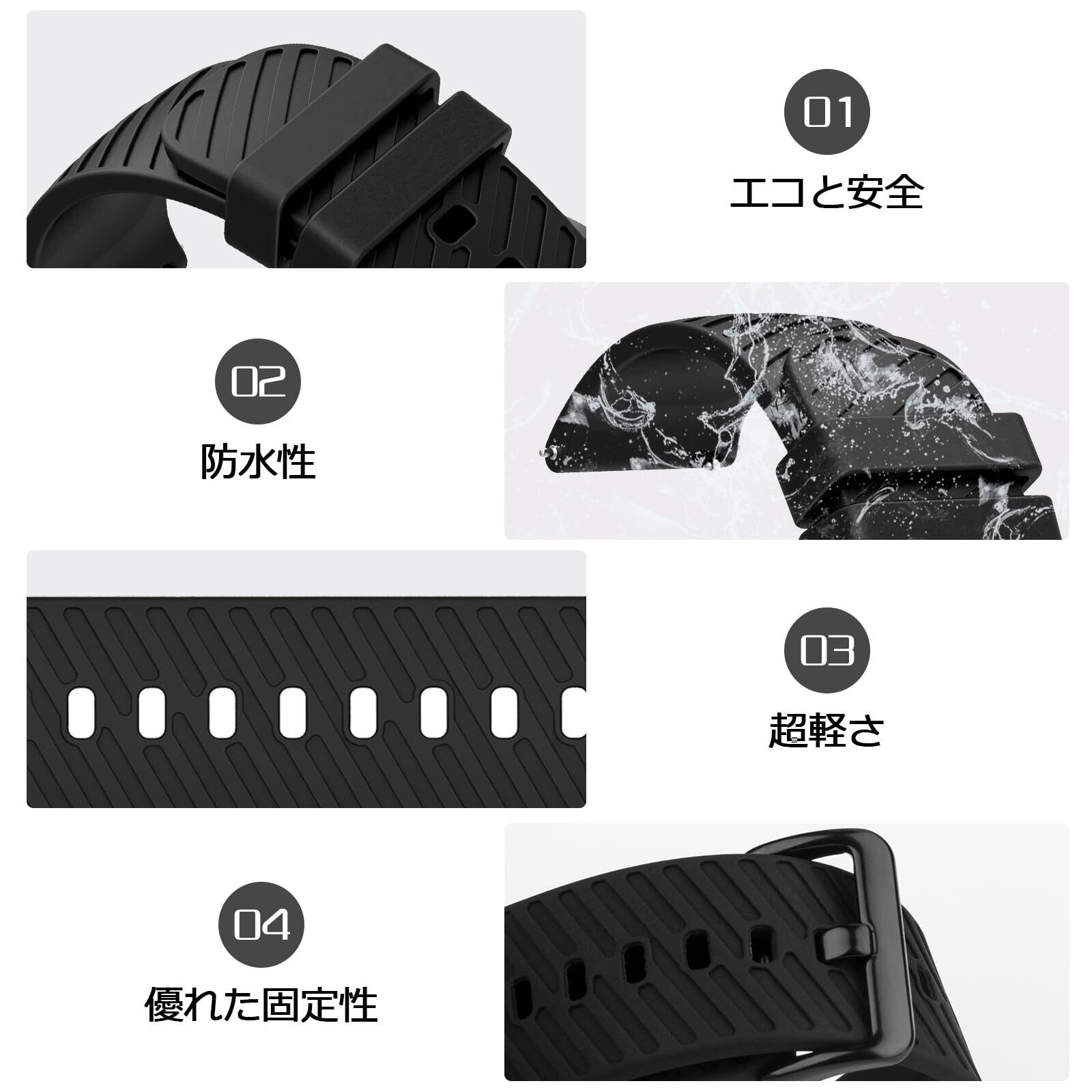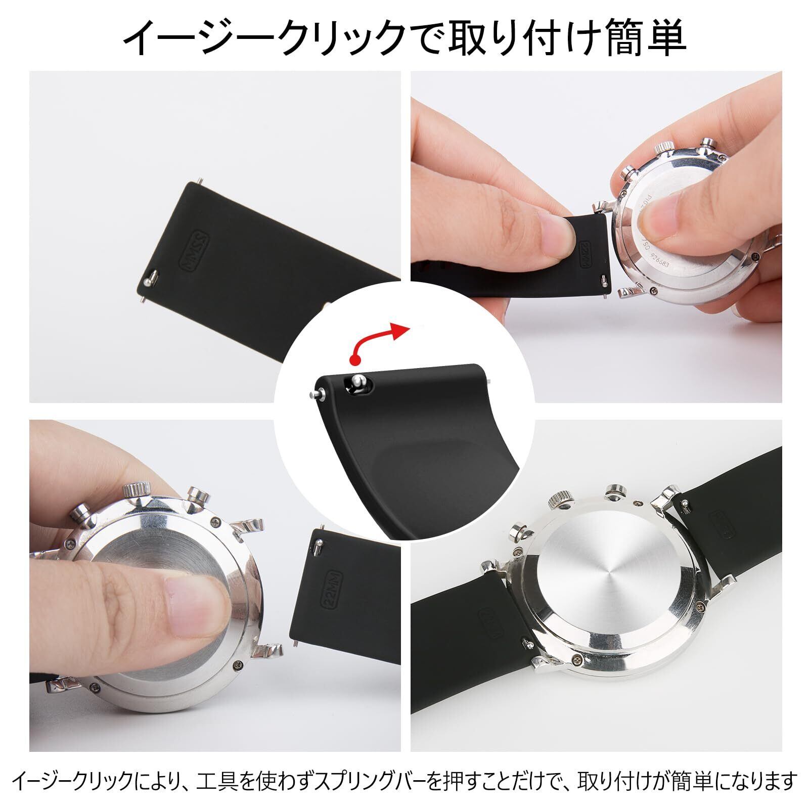 【環境にやさしく優れた手触り】ユニバーサルストラップは高強度の環境にやさしいシリコン製で作られて、 太陽の下での黄変、可塑剤、油、汚れに強い、汚れに強い、柔らかい手触りで、抜群な弾力性、装着は柔らかく快適です。ラバー特有の嫌な臭いもなく、質感や手触りに優れ、柔軟性と強度を兼ね備えています。見た目もスッキリ、フィット感もとても良くて。