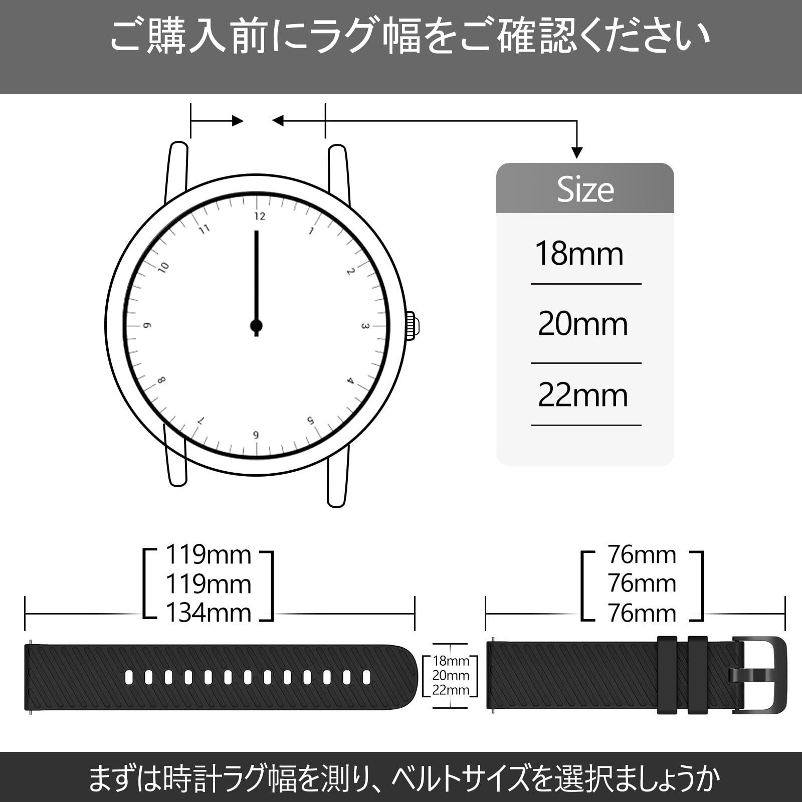 【防水性&優れたフィット感じ】時計バンド は高品質シリコン製で優れた防水性を実現してくれ、 日常生活だけでなく、プールや海などのマリンスポーツでも使用することができます、それに。超柔らかくて手首にフィットして装着快適です。本腕時計バンドはほとんどのブランドの時計やスマートウォッチに適しています。 ストラップの幅は18mmと20mmと22mmがありますので、ご不便をおかけしないよう、ご購入前に必ず時計のラグ幅をご確認ください。