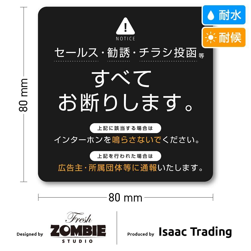 Isaac Trading セールス 勧誘 チラシ お断り マグネット インターホンサイズ(80×80mm) (ブラック)