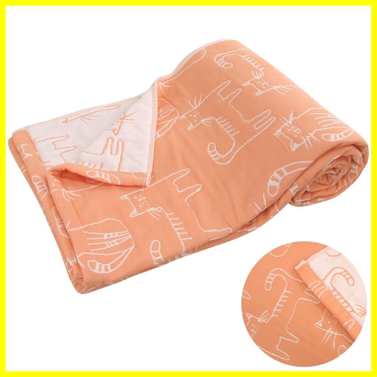リヴェール ガーゼケット シングル 3重ガーゼ ねこ柄 綿混 ブランケット 夏掛け 肌掛け (オレンジ)