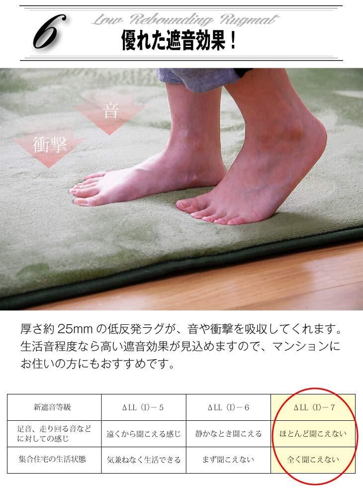 【クッション性抜群】厚さ約20mmの高密度低反発ウレタンを使用し、ラグの厚さが約25mmになります。
