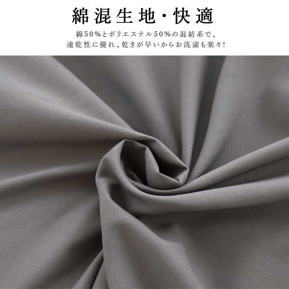 【綿混・超吸収超速乾】綿50%とポリエステル50%の混紡系を採用され、速乾性に優れ、乾きが早いからお洗濯も楽々!柔らかくて手触りが心地よい、耐久性も高い、1年中のオールシーズンにお使いいただけます。汚れ防止だけでなく、肌への優しさ、快眠のために機能する快眠掛け布団カバーです。