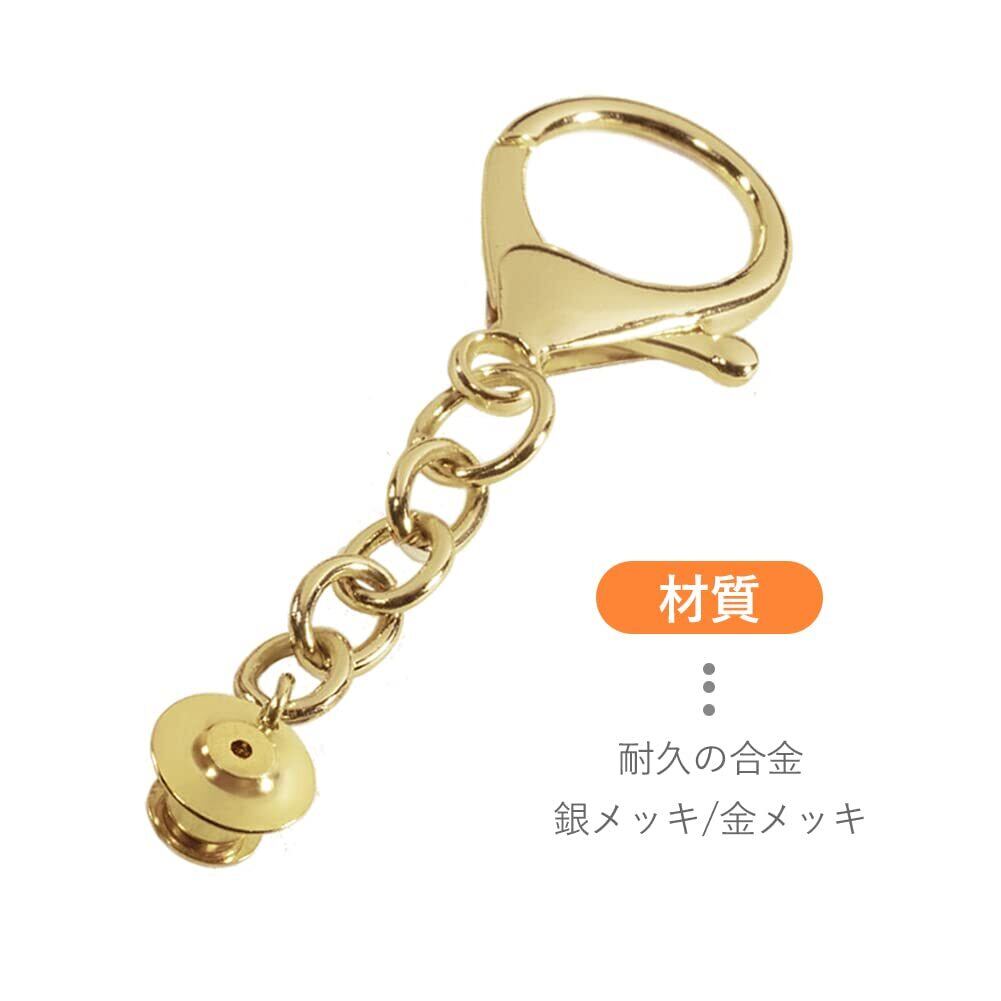●製品名前:ピンバッジ用キーホルダー2個。●材質:耐久の合金、銀メッキ/金メッキ。●サイズ:全長約75mm、針径1mm。