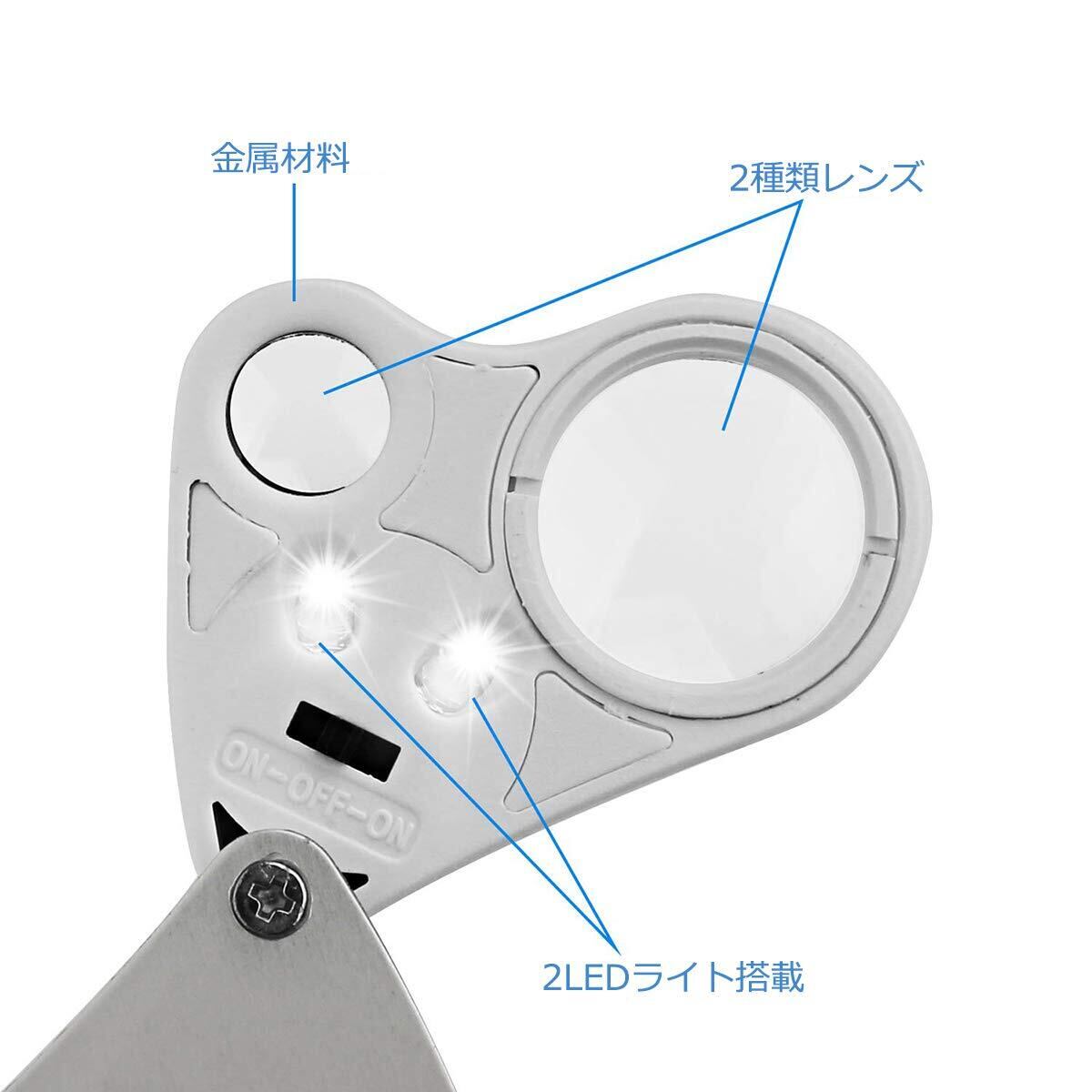 COOLEAD 携帯ルーペ LEDライト付き 拡大鏡 30倍/60倍の2レンズ 折りたたみ ジュエリールーペ 手持ちルーペ 宝石鑑定用 精密作業に 昆虫観察 校正 校閲 収納ケース入り