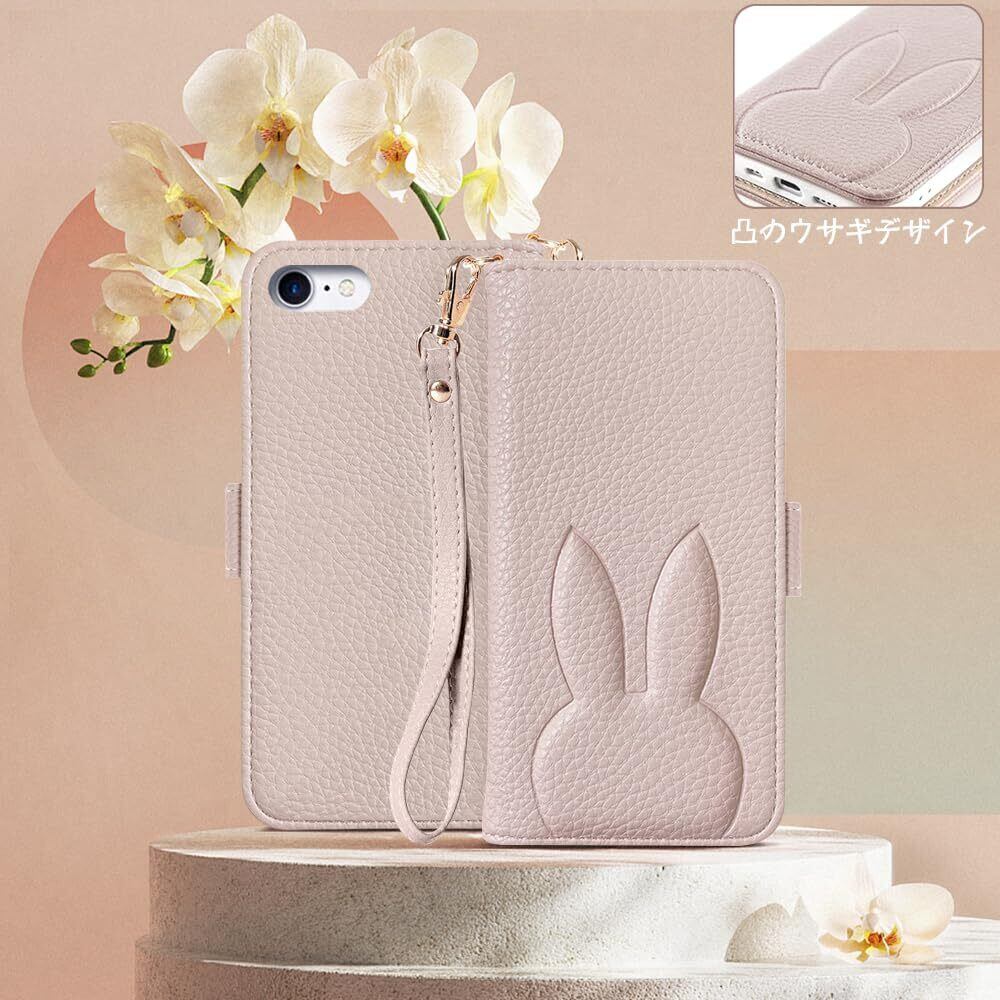 MAGICASE iPhoneSE 第2世代 iPhone8/7 /6/6sケース 手帳型 アイフォン8 スマホケース あいふぉん7 手帳カバー アイフォンSE 2022 保護ケース おしゃれ アイホン6s シンプル カードポケット 電話ケース 可愛い 財布型 兎 人気 携帯カバー レディース 女性 柔らかいTPUケース 上品 ストラップ 美しい アイホン8 かわいい 携