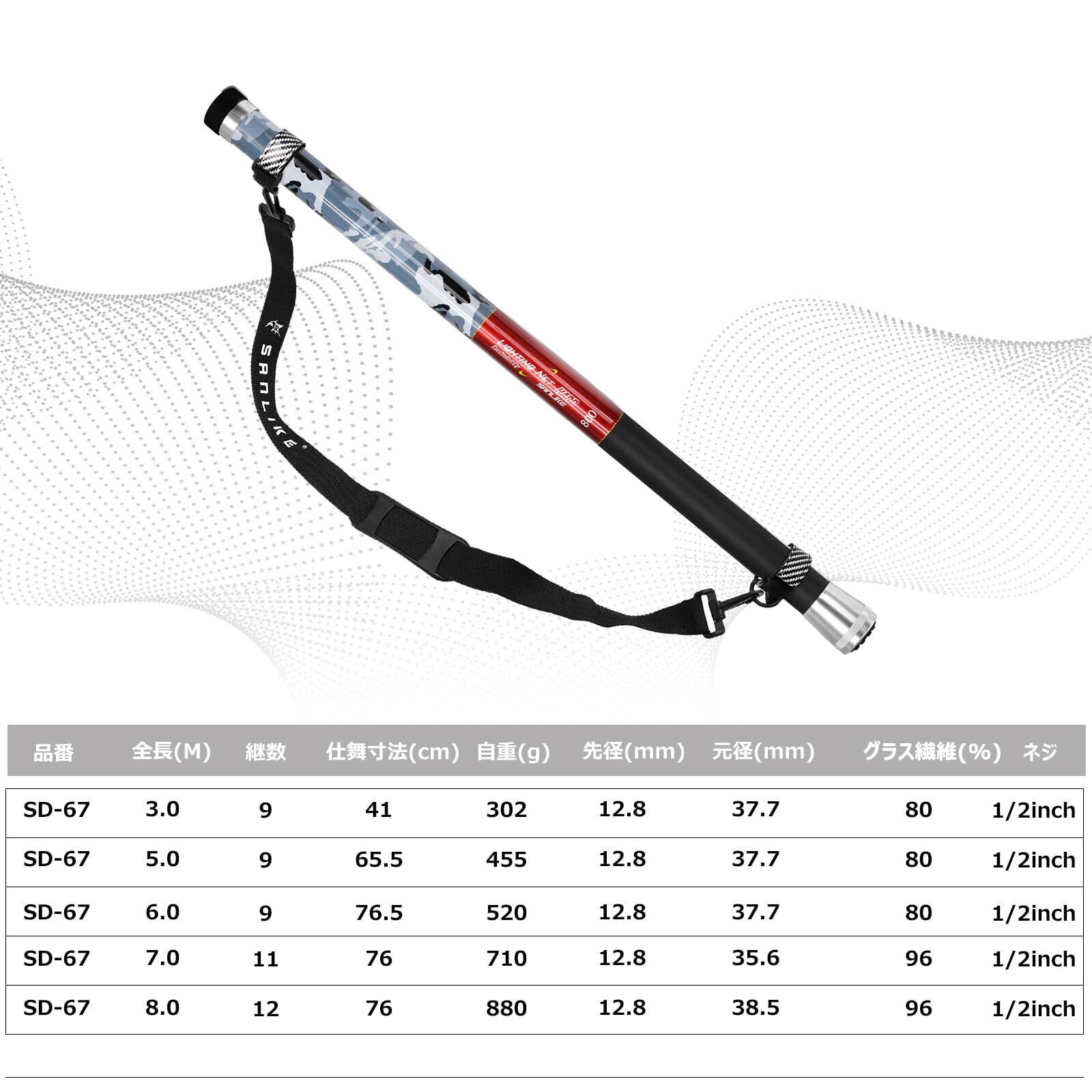 サンライク(SANLIKE)玉の柄 ランディングポール 伸縮式 小継玉ノ柄 磯釣り 軽量 タモの柄 EVA先端 ベルト付き 海水淡水両用 3M/5M/6M/7M/8M