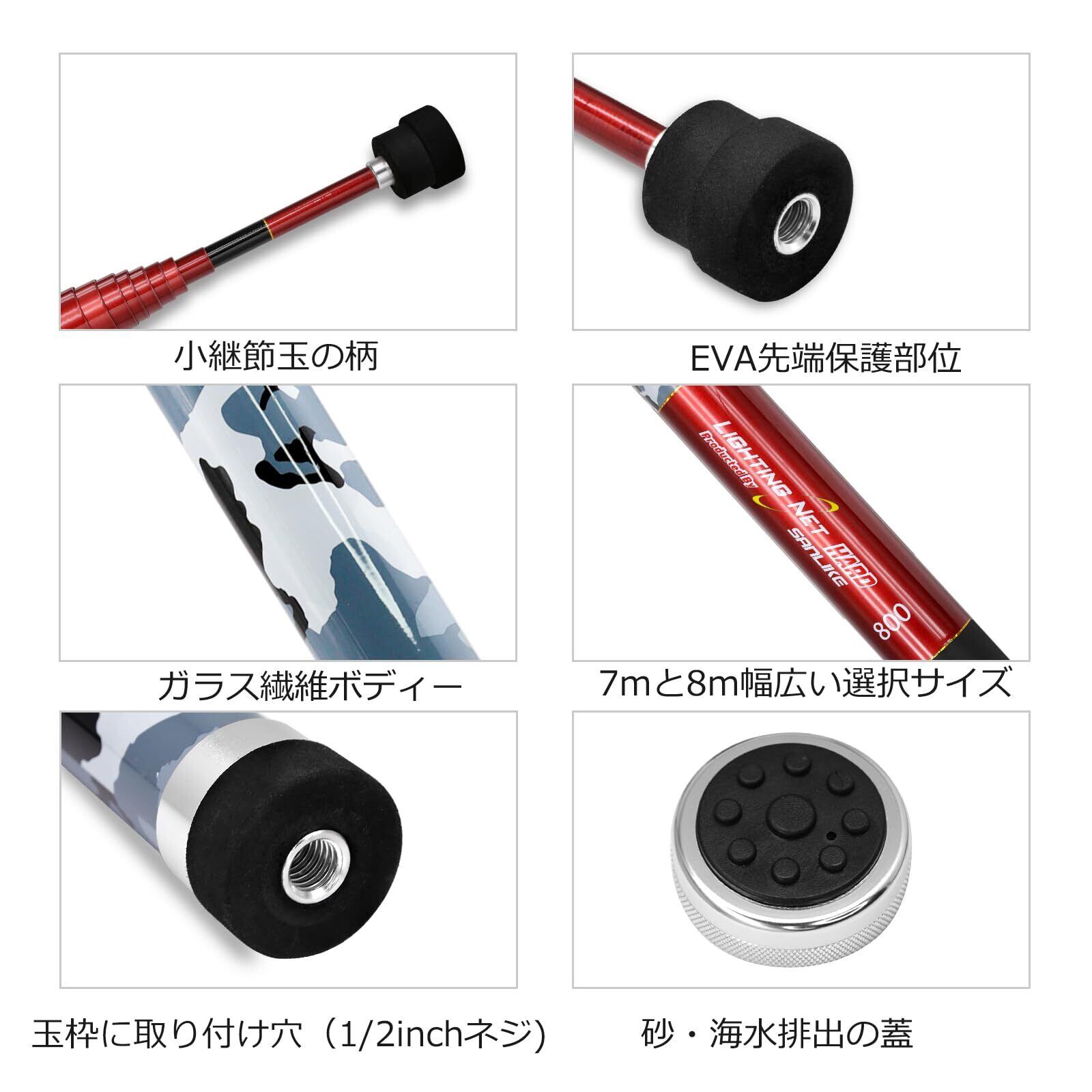 柄の材質:96%ガラス繊維素材を採用して、軽量でありながら、強度が高くて耐久性と耐腐食性に優れています。節の部分は強化加工して、破損のリスクを大幅に軽減します。