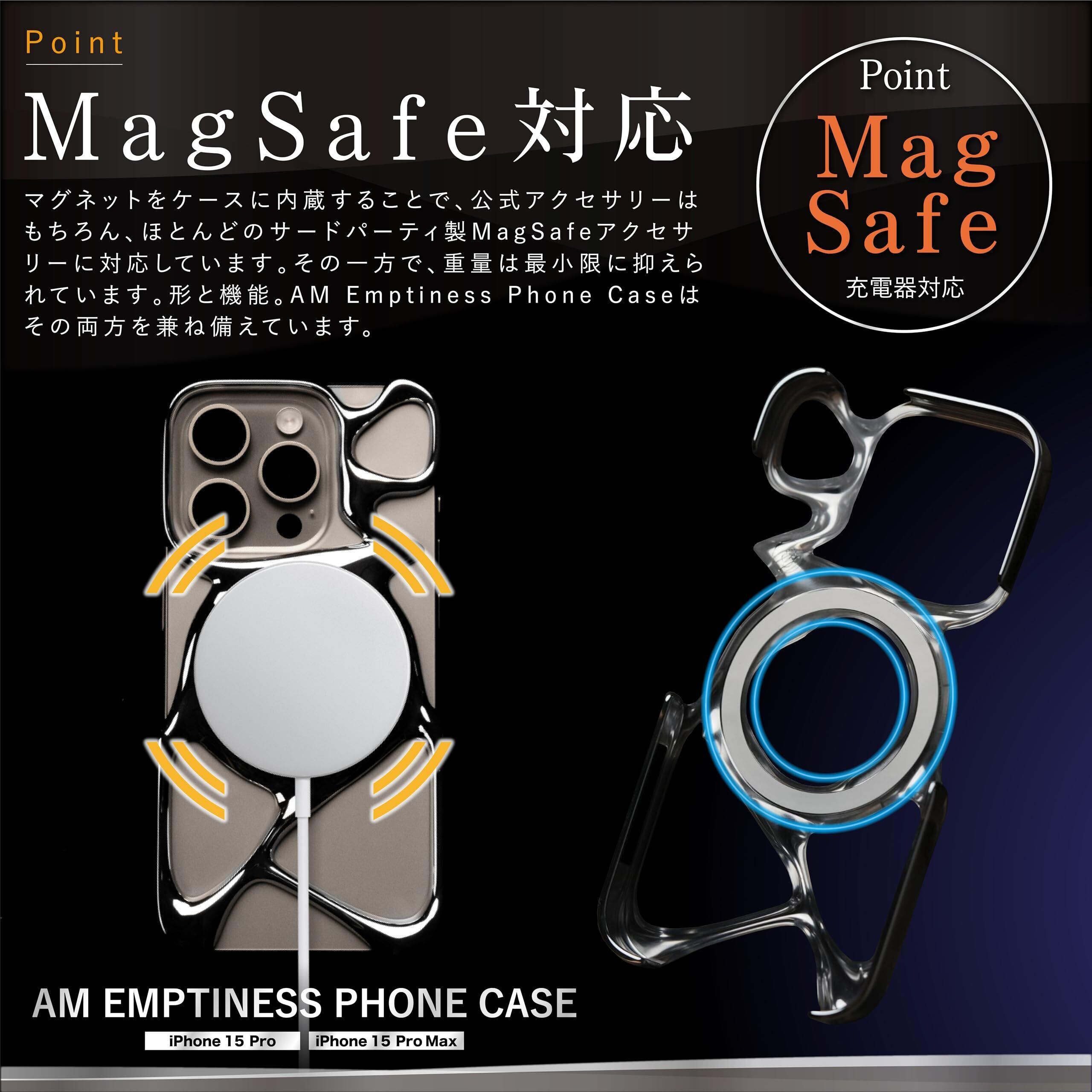 【革新と美しさの融合】 AM Emptiness Phone Case for iPhone 15 Pro / Pro Maxは、洗練されたメタル調デザインで、軽量かつ強力な保護力を提供。 MagSafe対応で、スマートにワイヤレス充電も可能です。滑らかなメタル感を楽しみながら、独自のスタイルを演出します。