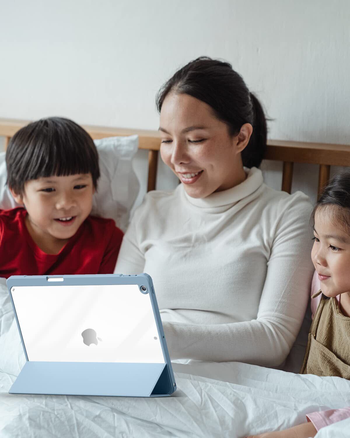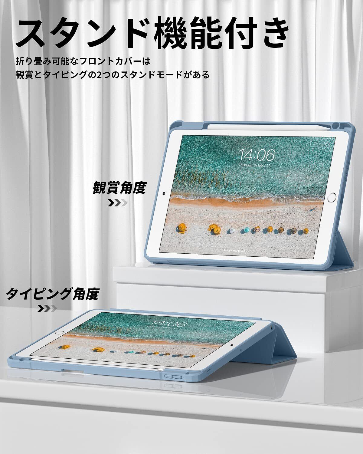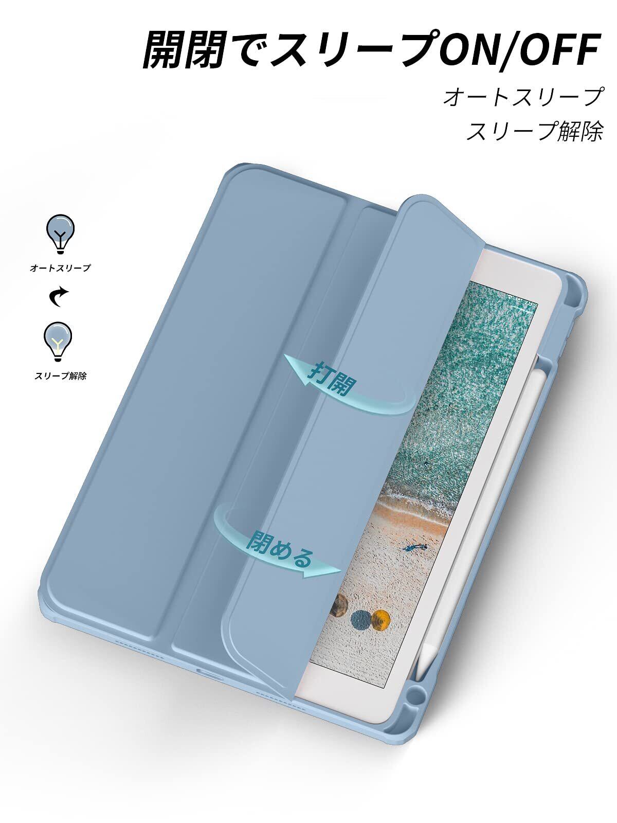 Aoub iPad 9世代 ケース 10.2 インチ iPad ケース 第9/8 /7世代 2021 2020 2019 透明バックカバー ペン収納 三つ折スタンド オートスリープ機能 軽量 薄型 傷つけ防止 PU合成レザー TPU (モデル番号A2602、A2603、A2604、A2605) スカイブルー