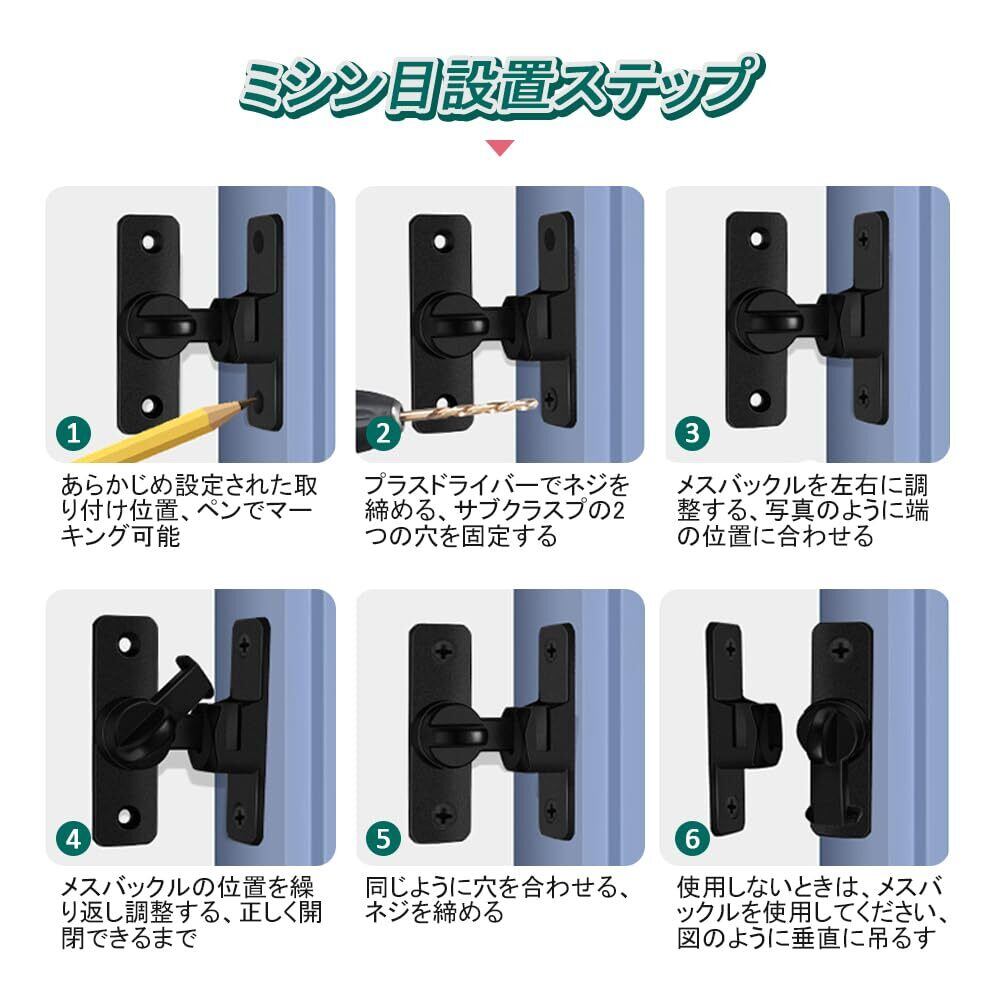 取り付けが簡単: 取り付けネジが付き、取り付け手順が簡単明瞭で、数ステップですぐに完成できます、使用する際、まず両面テープでドアの位置を決め、スムーズな開閉を確保してから最終的に固定することをお勧めします。