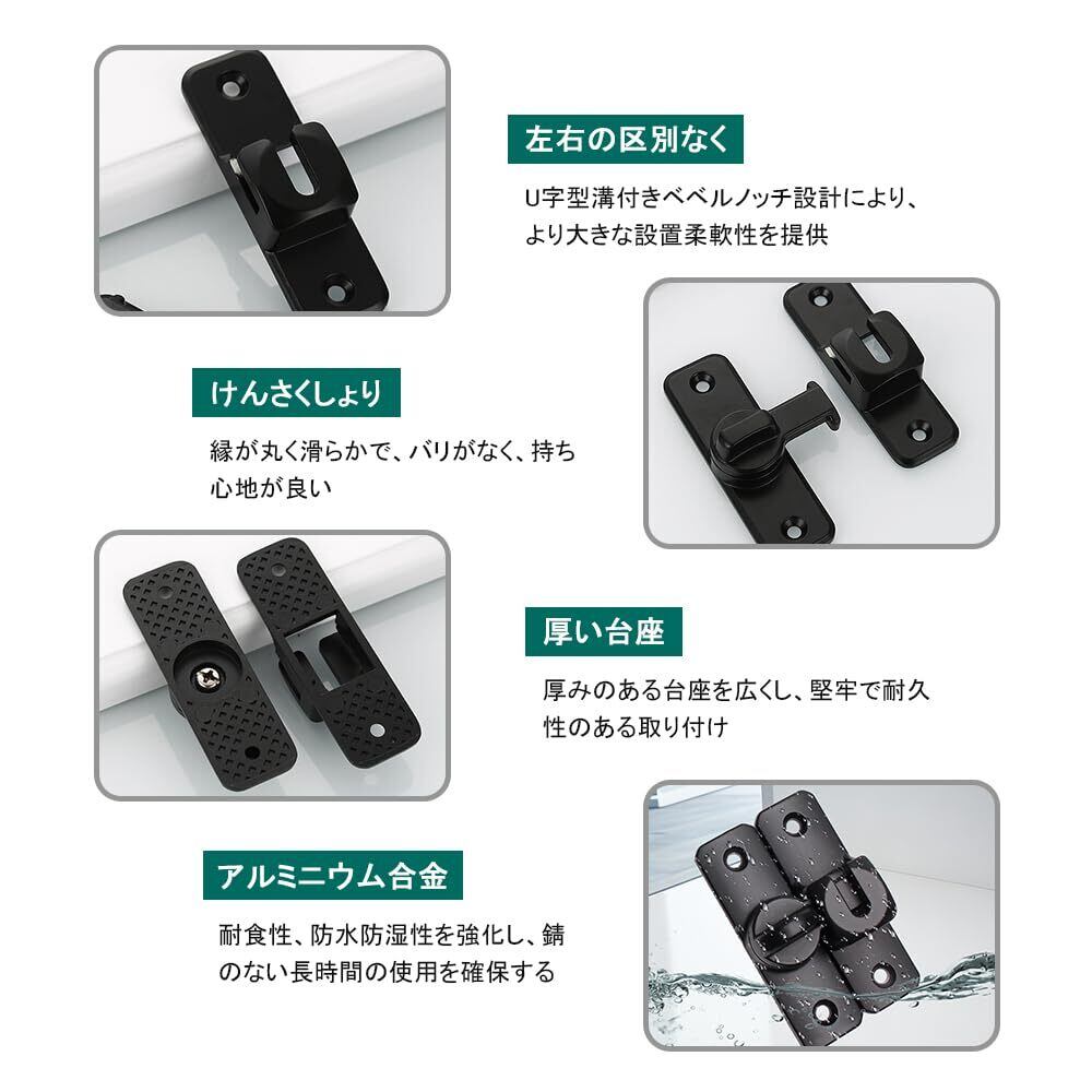 UrbanPulse ドアロック 90度/180度 補助錠 室内ドア 鍵 ロック部屋鍵後付けドアロック 後付け 亜鉛合金 防錆 耐久性 部屋 玄関 室内 ドア留め金ロック 内鍵 耐震ラッ 防犯リビング 寝室 家庭用 業務用 いたずら防止 対策取り付け簡単 (ブラック)