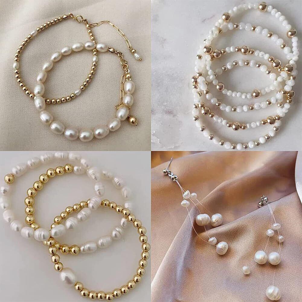 【サイズの多様性】5種類のサイズの真珠と5種類のデザインのアクセサリーがあり、サイズバリエーションとスペーサーが豊富なので、いろいろなアクセサリー作成にピッタリです。