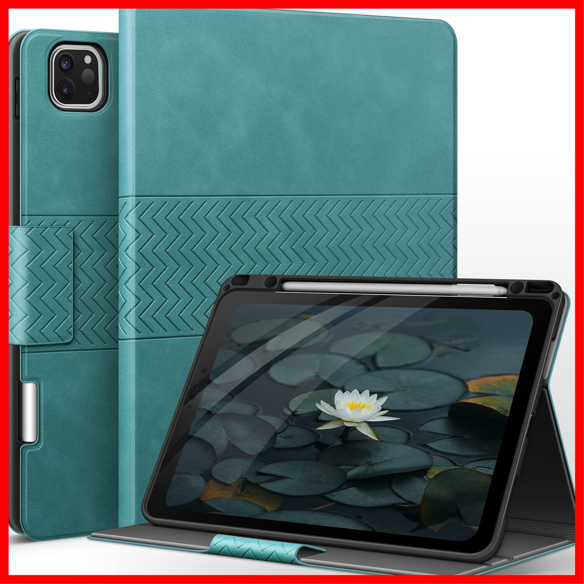 auaua iPad Pro 12.9インチ ケース 2022/2021/2020/2018 ペン収納 PUレザー 手帳型 ひび割れ防止 耐衝撃 オートスリープ&スタンド機能付き 全面保護 iPad Pro 12.9 第6/5/4/3世代兼用 (グリーン)