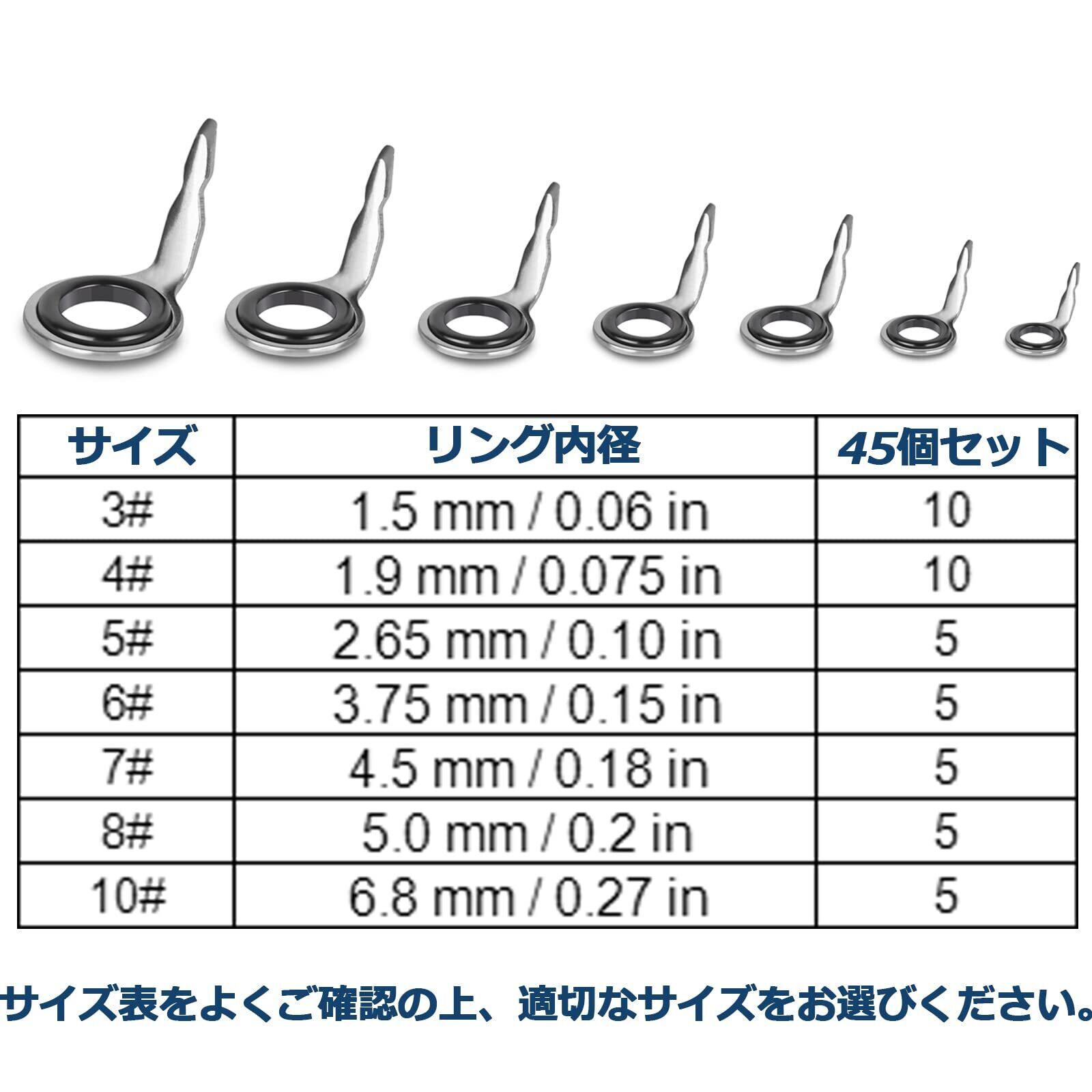 9KM DWLIFE ロッドガイド 45個セット ステレンス ラミックリング 釣り竿穂先 交換 修理キット 淡水 海水