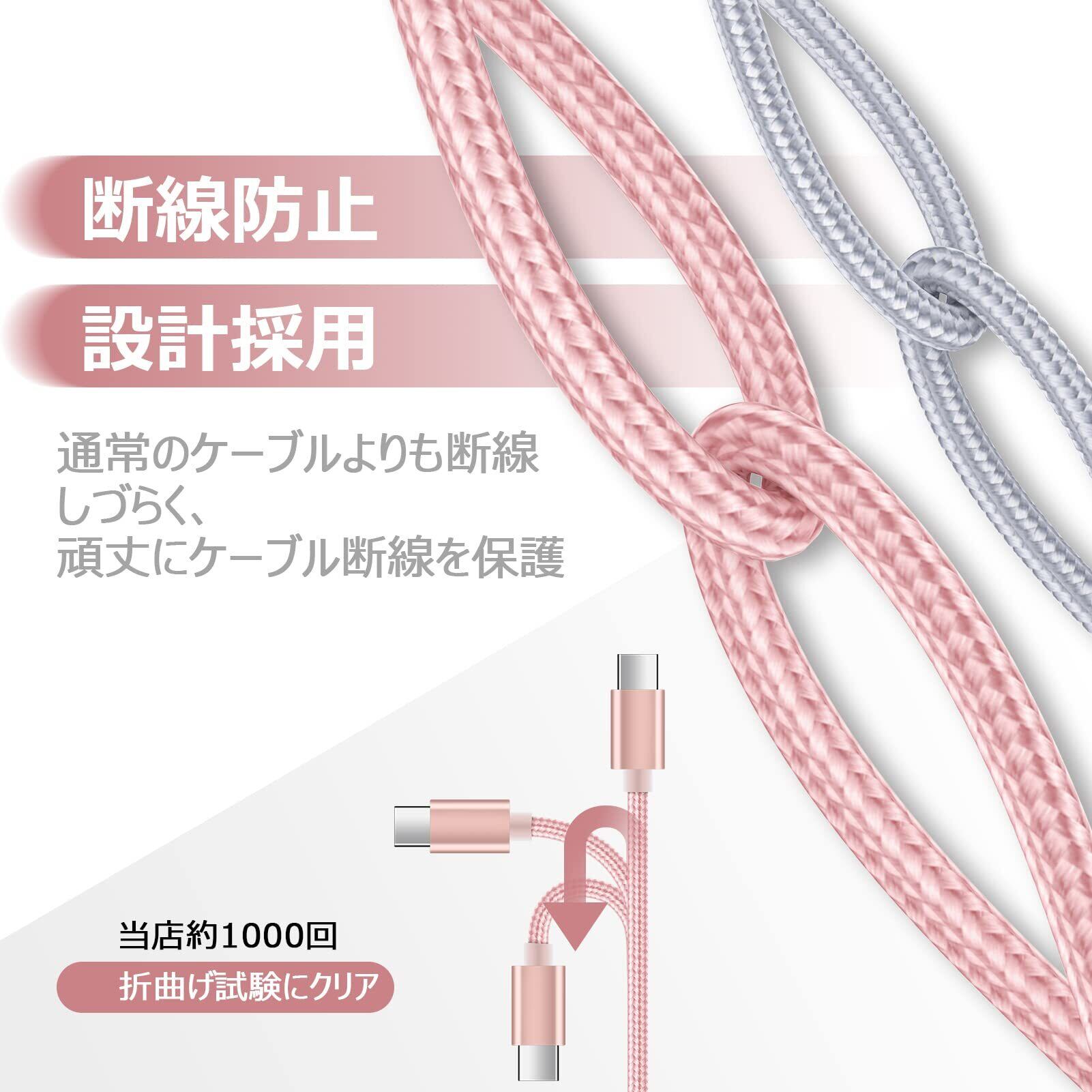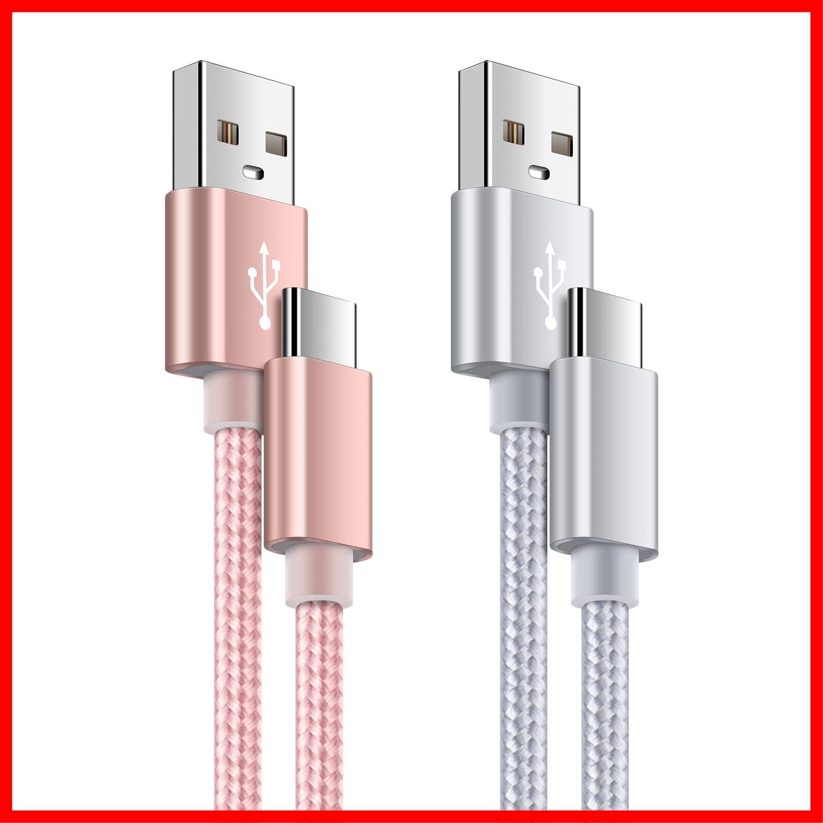 USB Type-C ケーブル QC3.0対応 【2本セット&0.91m】 usb c ケーブル スマホ充電ケーブル タイプC ケーブル iPoto 急速充電 Android充電ケーブル usbケーブル 充電ケーブル USBコード データ転送 断線防止 高耐久ナイロン iPad Air4,iPad Android などのタイプC多機種対応 ローズゴールド+シルバー