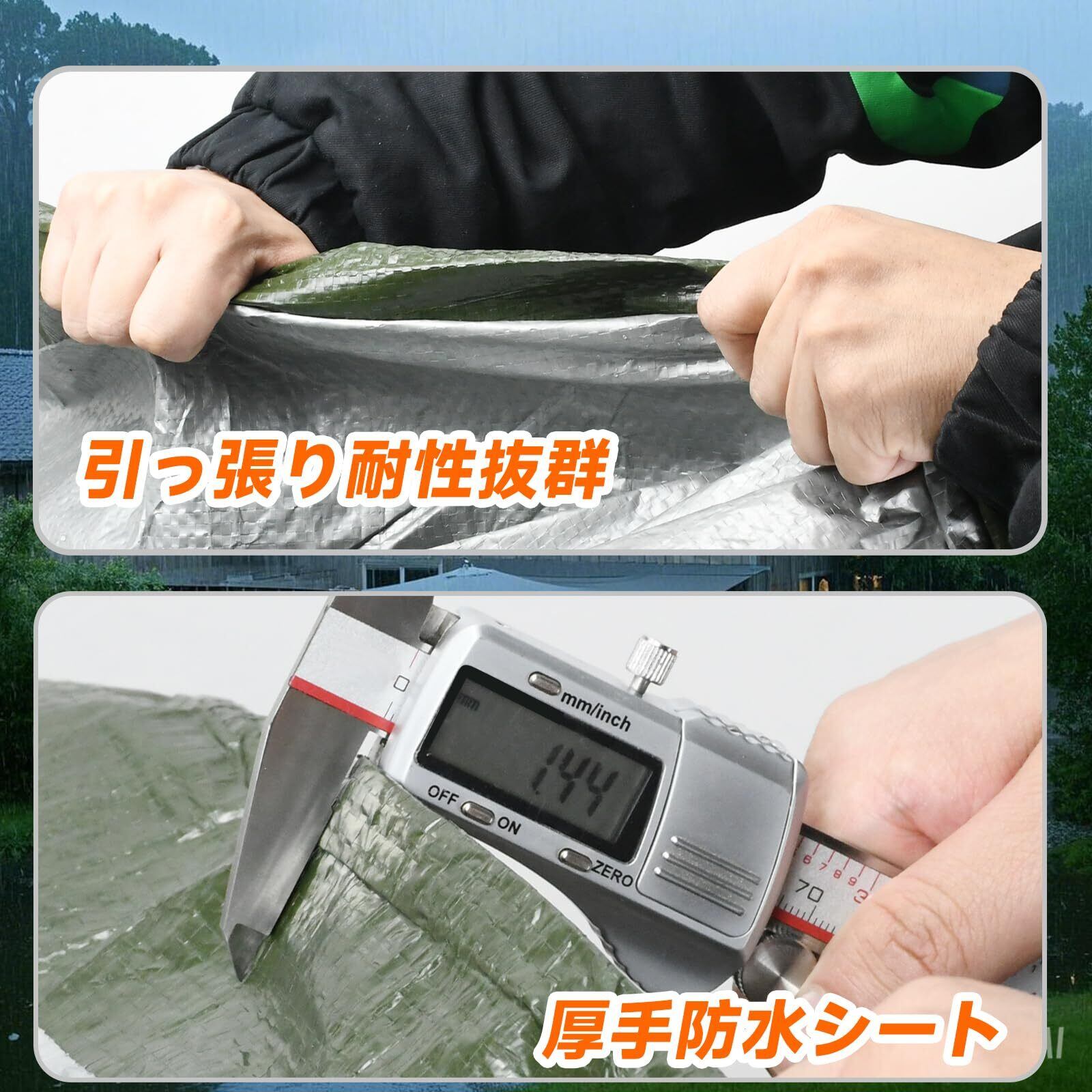 【防水防雨加工】 防水シート表面撥水コーティング、水が溜まらないので、排水が速く、水が溜まりにくいので、浸透の心配もありません。浸透の心配がなく、悪天候時の保護にも優れています。