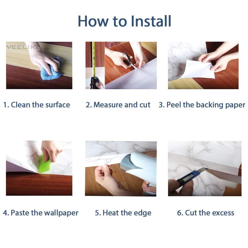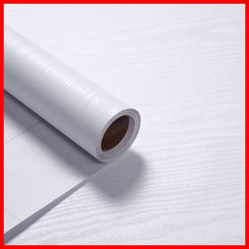 VEELIKE 40cmx3m 壁紙シール 木目 ウォールステッカー 無地 白 リメイクシート 防水 耐熱 防汚 防油 インテリアシート 剥がせる壁紙 接着剤付き カッティングシール キッチン シート 賃貸OK 模様替え 家具 台所 浴室 補修シール シート DIY 木目調 壁紙
