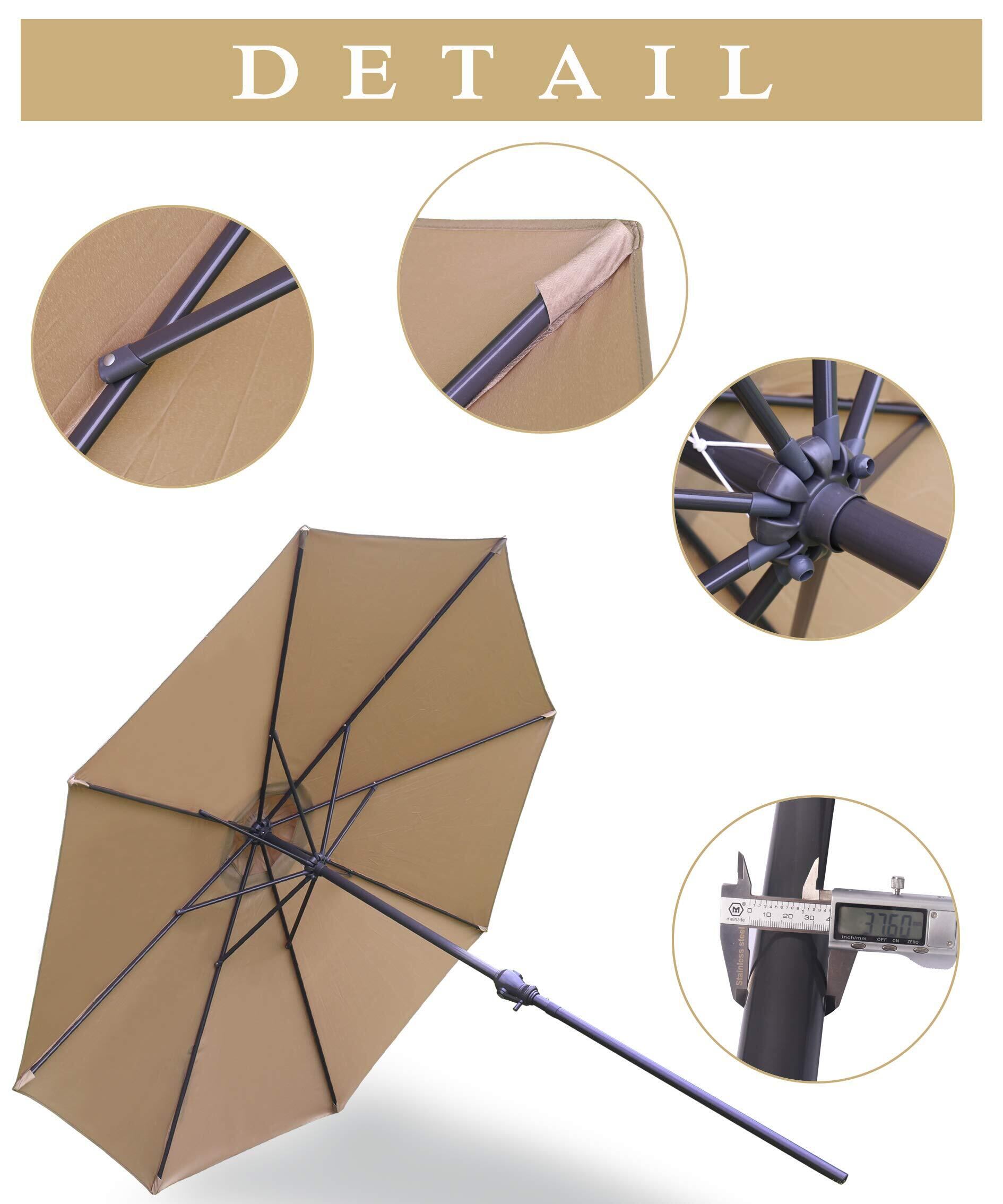 ハンドル回転式:パラソルの開閉には、普通の傘とは違いハンドル式を採用、クルクルと回すだけで開閉できるので、これほど大きなパラソルでも女性一人で簡単に開閉できます