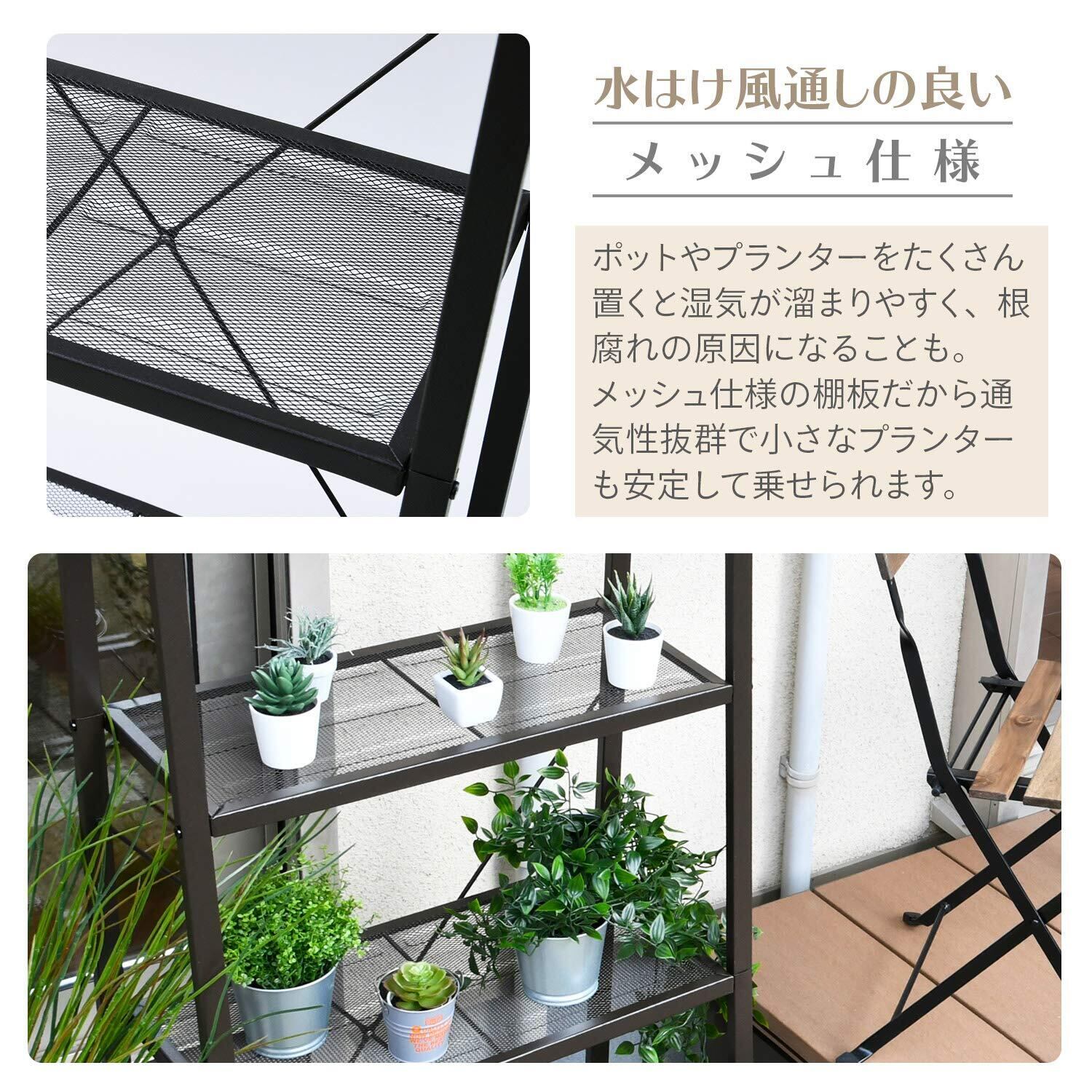 ●室内でも屋外でも使えるガーデンラック4段タイプ。