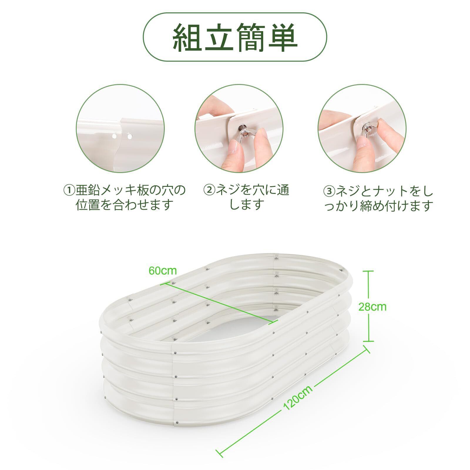 DEWEL レイズドガーデンベッド 亜鉛メッキ プランターボックス 金属製 ガーデンベッド ガーデンボックス プランター 工具不要 屋外 野菜用 植物 花 (アイボリーホワイト, 120x60x28cm)