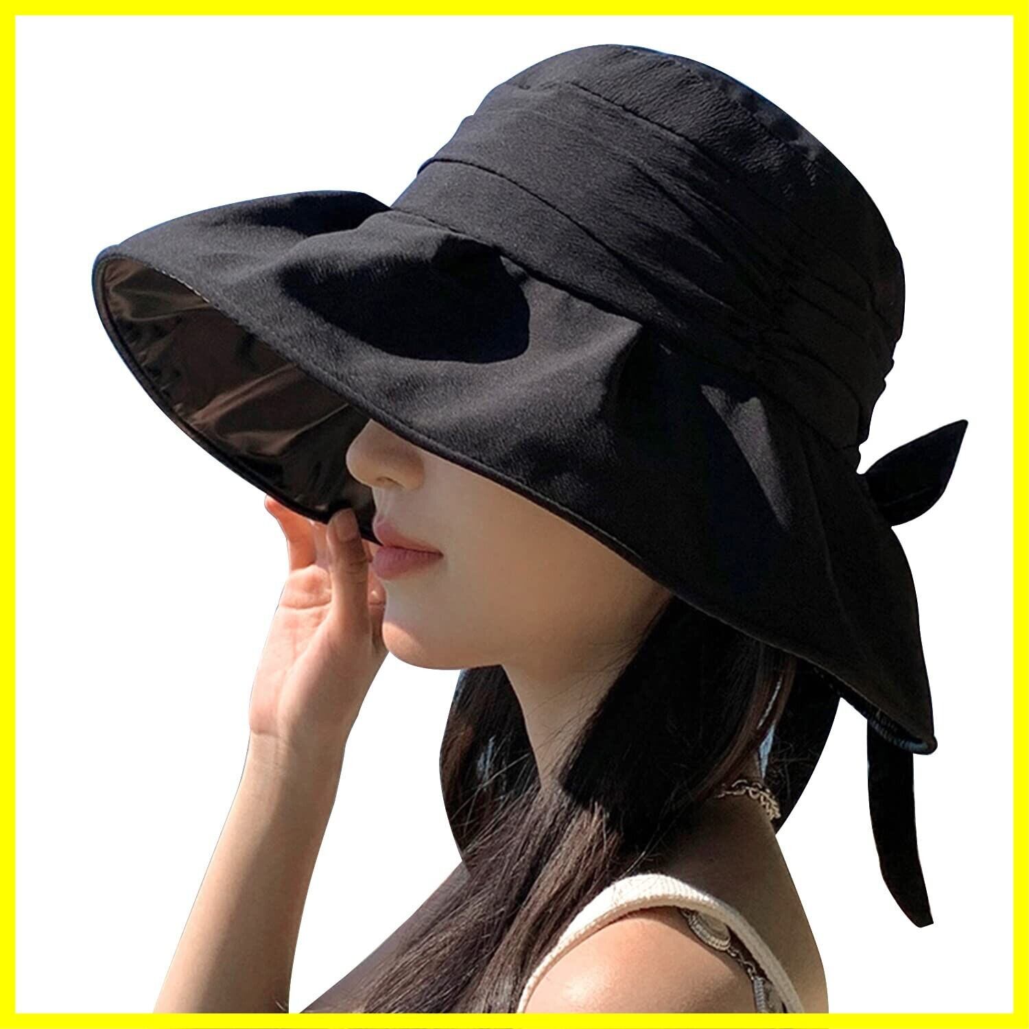 [Gokamoi] UVカット 帽子 レディース ハット レディース 日焼け防止【つば広・小顔効果・折りたたみ・サイズ調節】 遮光 遮熱 通気 紫外線対策 日除け帽子 ワイヤー入り あご紐 散歩 旅行 通勤 大きいサイズ 春夏
