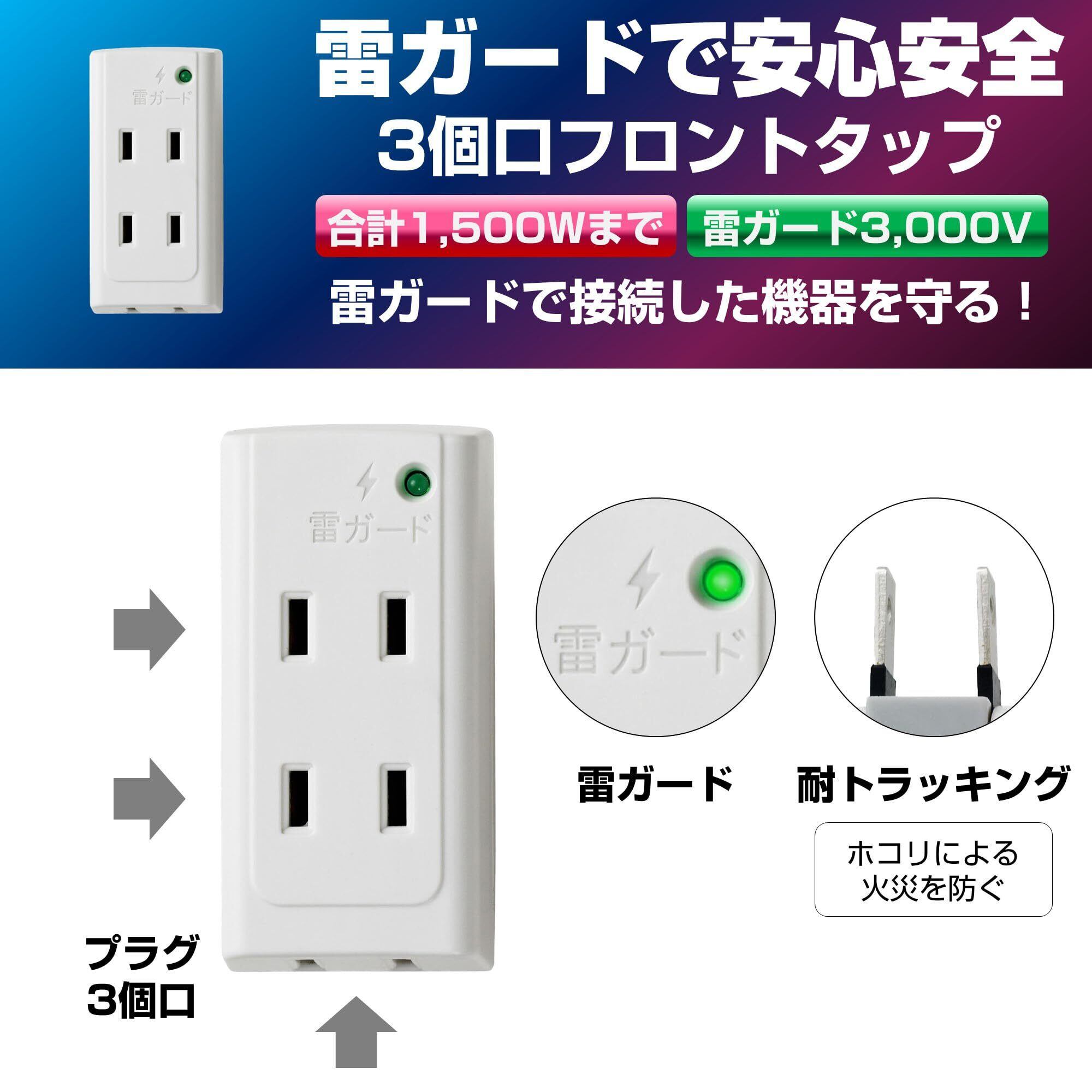 【雷に強い】1つのコンセントから3方向に電源を分配することができます。耐雷サージ機能付トリプルタップです。