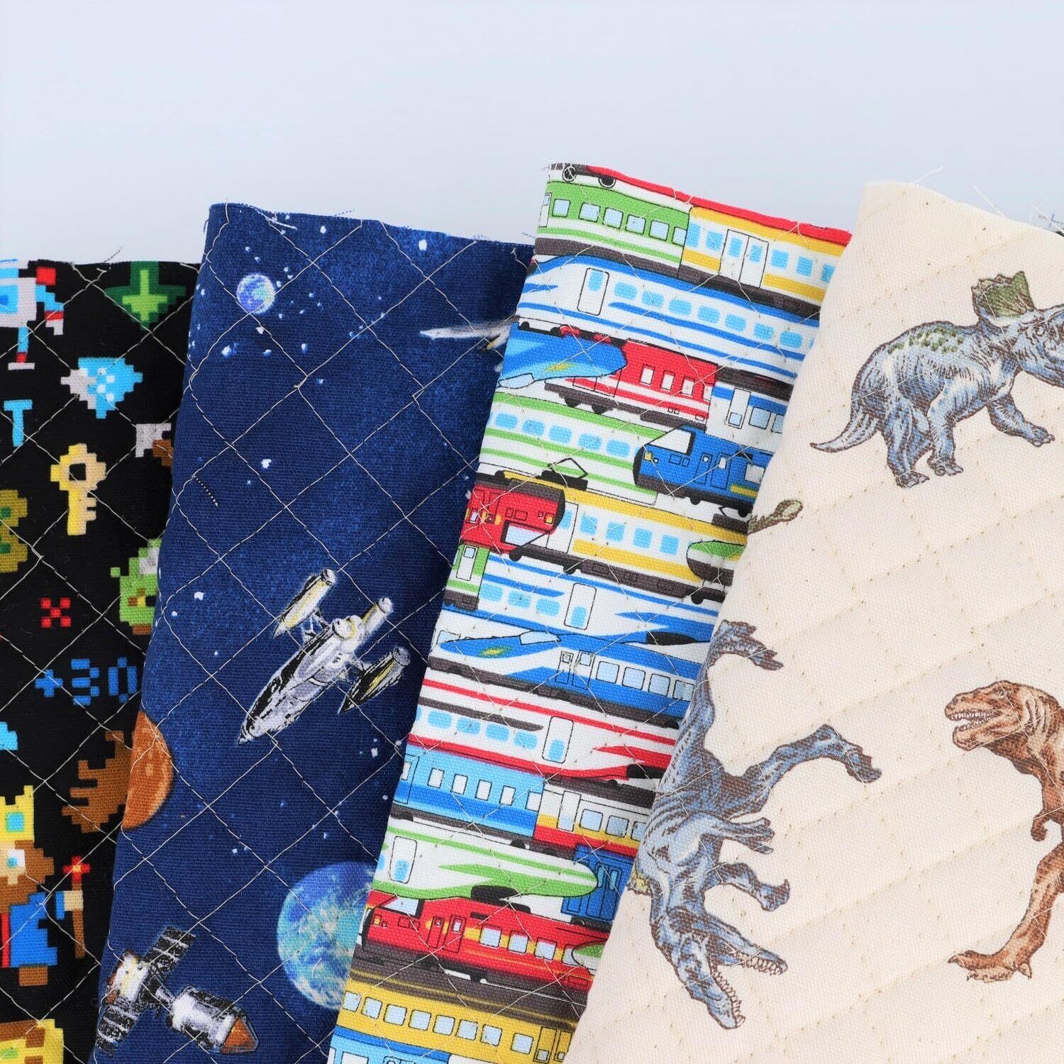 男の子 におすすめのキルティング 生地 50cm カットです。 子供用 通園バッグ や 巾着袋 などの 入園グッズ 作り ・ 入学準備 、 エコバッグ や 布 小物 制作 にもおすすめです。人気のティラノサウルスやトリケラトプスがかっこいい、リアルな恐竜柄です。