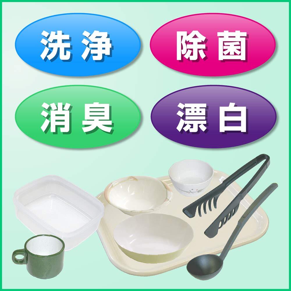 ○落としにくいこびりつき汚れや蓄積汚れをつけておくだけで汚れを浮かせて落としま す。○防腐剤配合なので、アルカリや漂白剤に弱いアルミ商品にも使用いただけます。○除菌成分配合なので、洗浄と同時に除菌ができます。