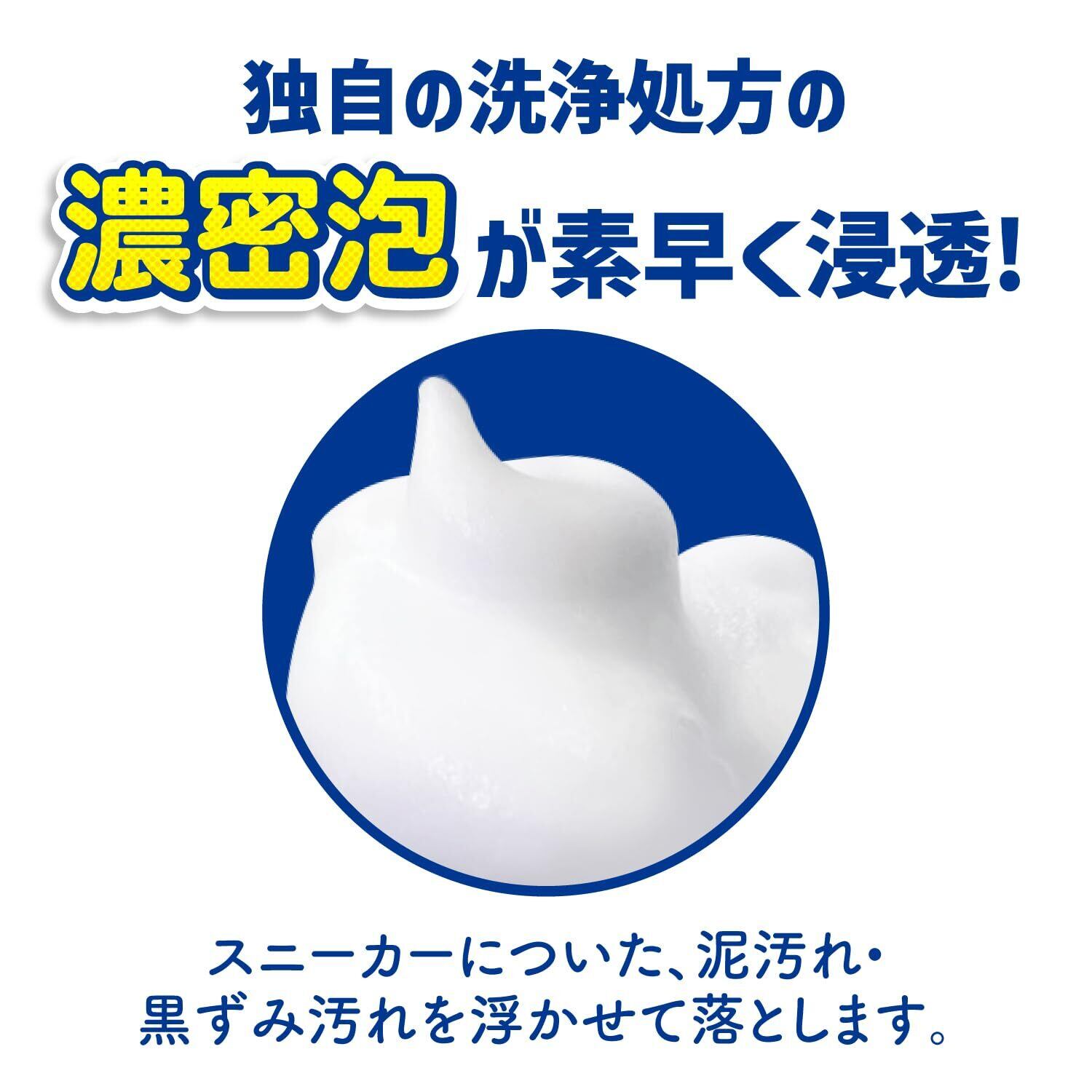【水不要のスニーカー用洗剤】濃密泡の洗浄液が、汚れに素早く浸透し「泥汚れ」や「黒ずみ汚れ」を落とします。
