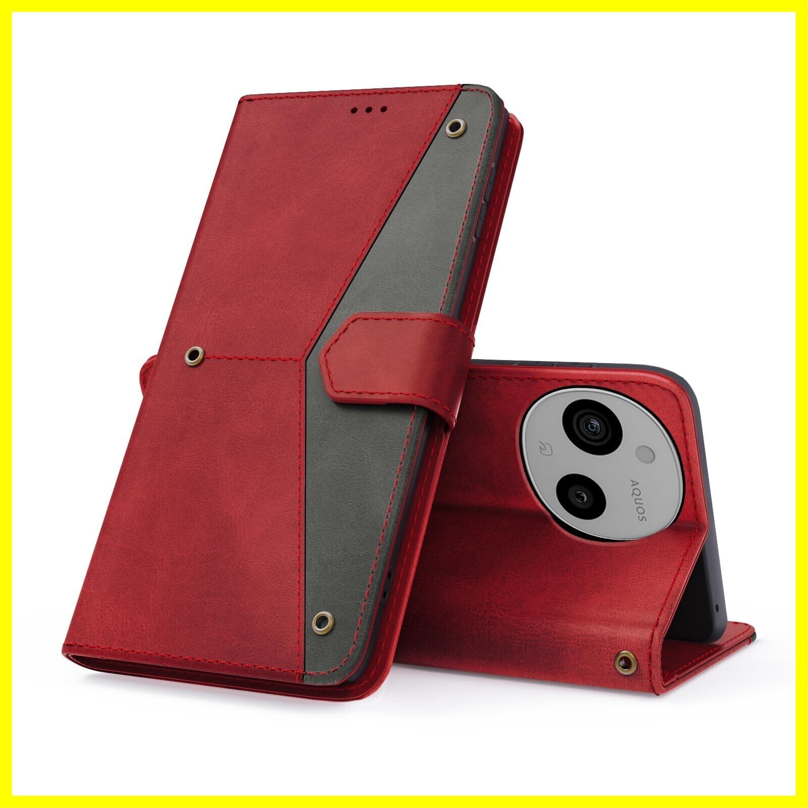 AQUOS sense9 ケース手帳型 財布型 アクオス sense9 スマホケース 耐衝撃 カード収納 スタンド機能 SH-53E SHG14 SH-M29 カバー マグネット開閉 のあるソフトタッチ AQUOS sense9 ケース ストラップホール付き 防水 耐摩擦 シンプル (レッド)
