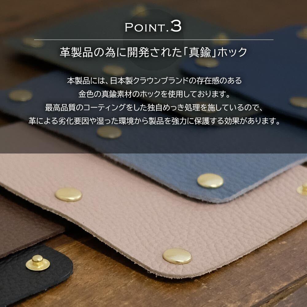 【真鍮ホックが上品に輝く】革製品の為に開発された、最高品質のコーティングを施した「真鍮」ホック。高耐久性があり製品を強力に保護する効果があります。「パチッ」と気持ちの良い音。ソフトタッチな留め外し。小ぶりでシンプルなデザインで製品との相性◎。3か所に配置する事で簡単に外れることなくしっかり止められるので安心してご使用頂けます。100%メイド・イン・ジャパンにこだわったハンドルカバー。※コーティングを施しておりますが使用日数により真鍮の経年劣化は発生致します。真鍮は湿度、日光、空気中の酸素、埃、脂など様々な要因で変化します。色の変化や黒ずみはその風合いも真鍮本来のあじとしてお楽しみ頂けます。