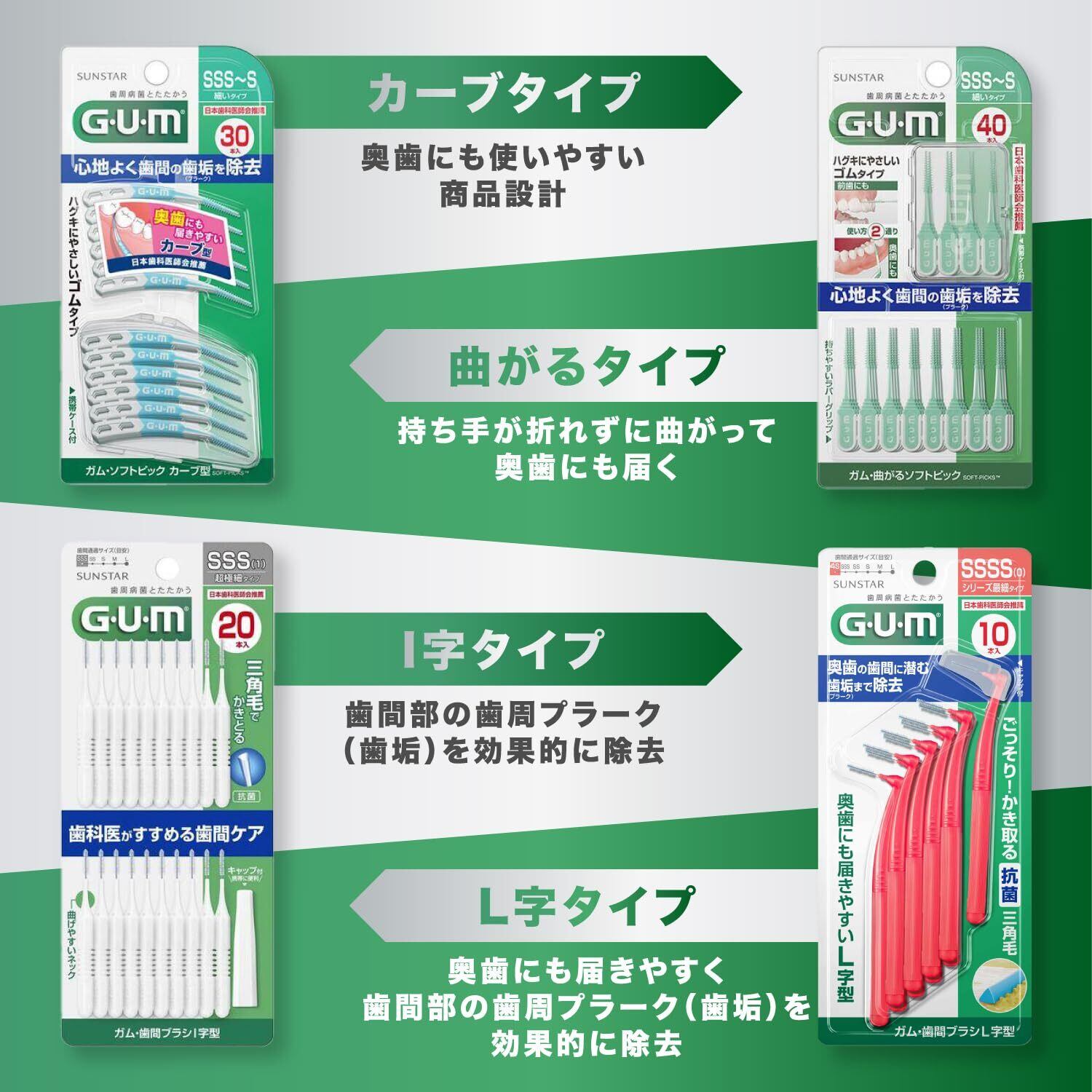 GUM(ガム) 歯間ブラシ L字型 奥歯の歯間ケア ワイヤータイプ [サイズ:S (3)] 10本入×3個パック+おまけ付き