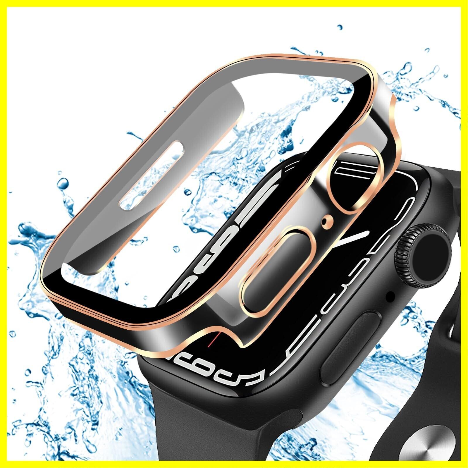 ANYOI 対応 Apple Watch ケース Series 10 42mm 防水 3D直角エッジデザイン メッキ加工 アップルウォッチ カバー ガラスフィルム アップルウォッチ ケース 耐衝撃 Apple Watch カバー 全面保護 装着簡単 高耐久 高透過率 PC素材 光沢のブラック/ローズゴールド